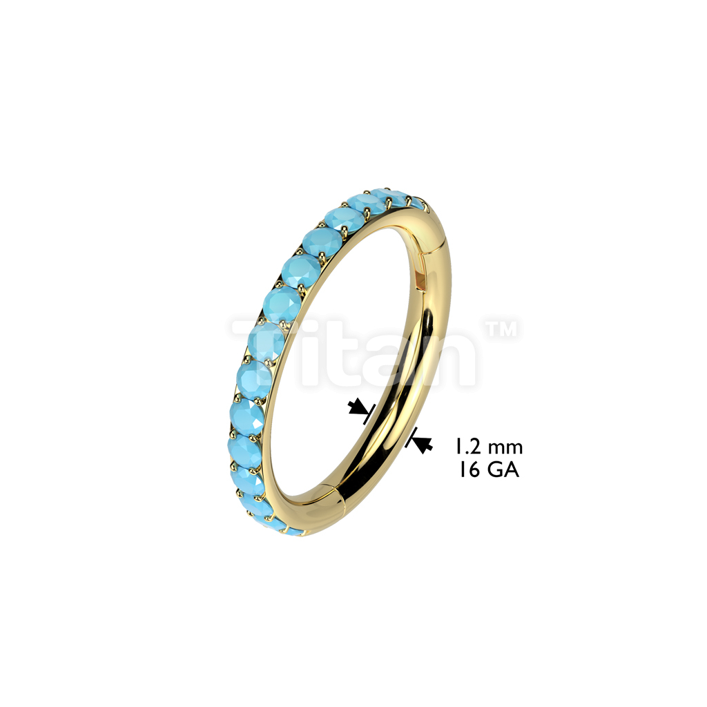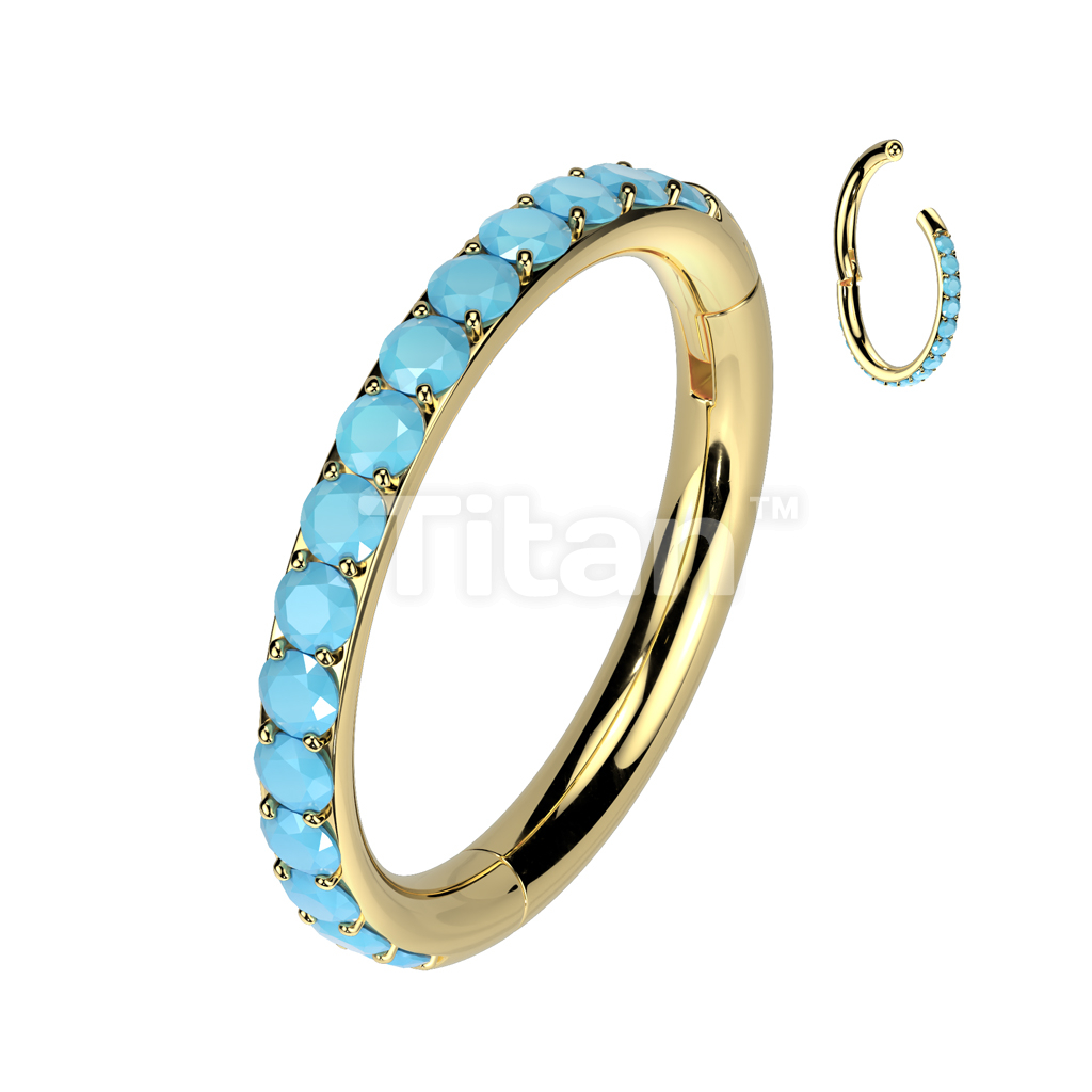 Implant Grade Titanium Hinged Segment Hoop Ring With Outward Facing Pave Turquoise