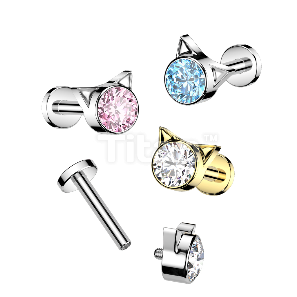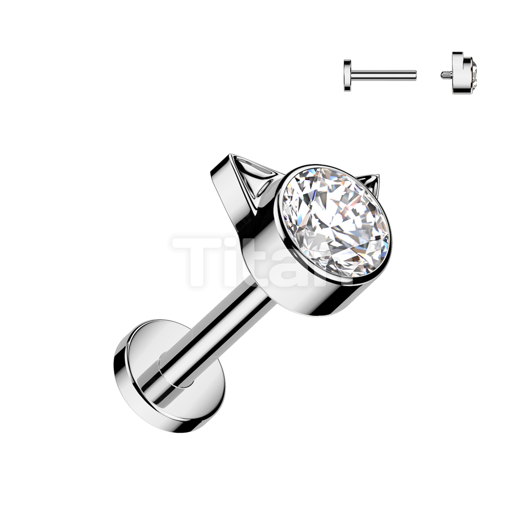 Implant Grade Titanium Internally Threaded Labret With Bezel Set CZ Kitty Top