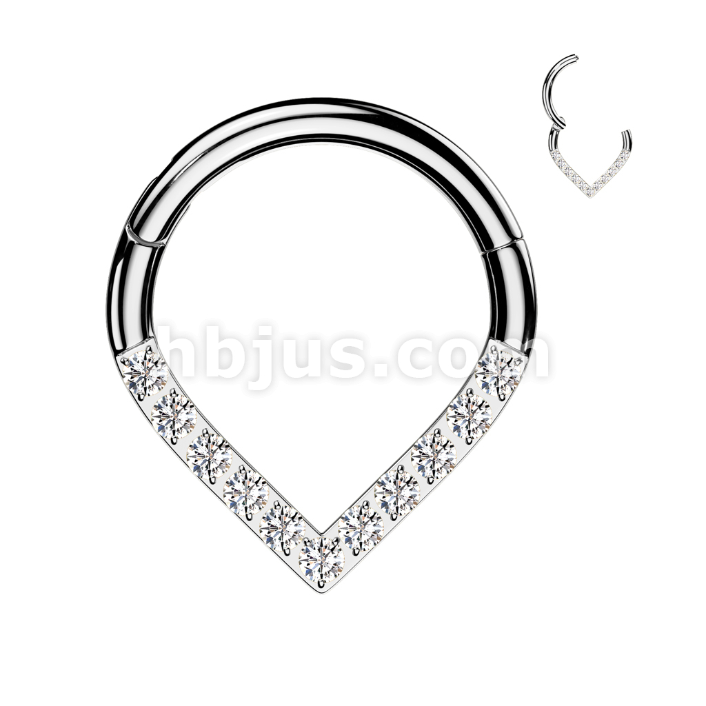 High Quality Precision All 316L Surgical Steel Hinged Segment Hoop Ring With CNC CZ Single Line Chevron
