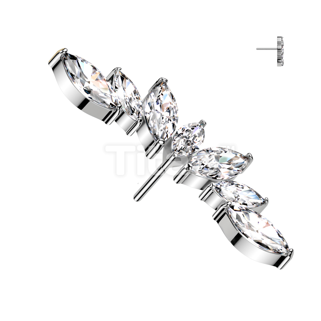 Implant Grade Titanium Threadless Push In 7 Marquise CZ Wide Fan Top