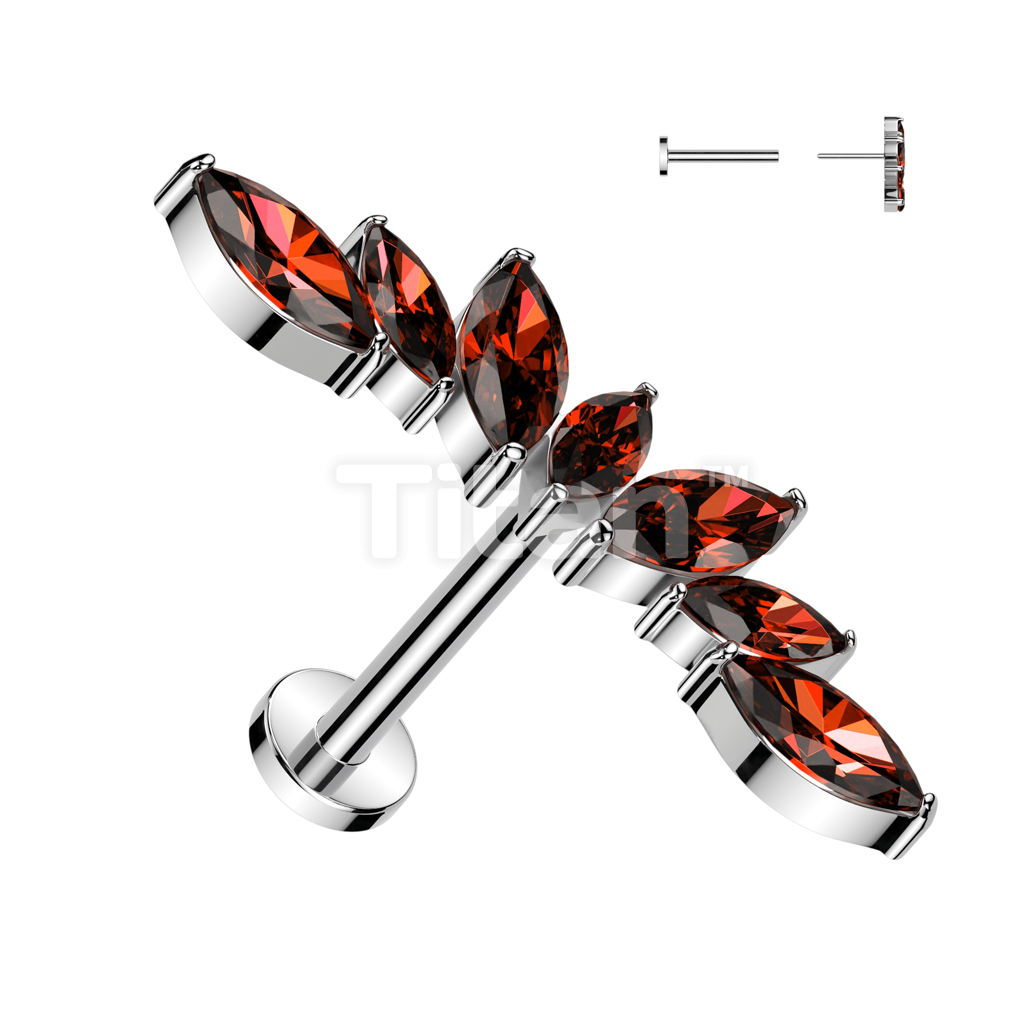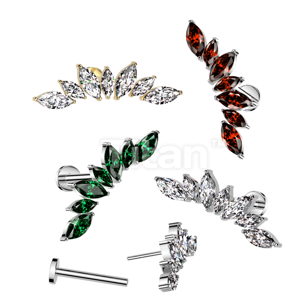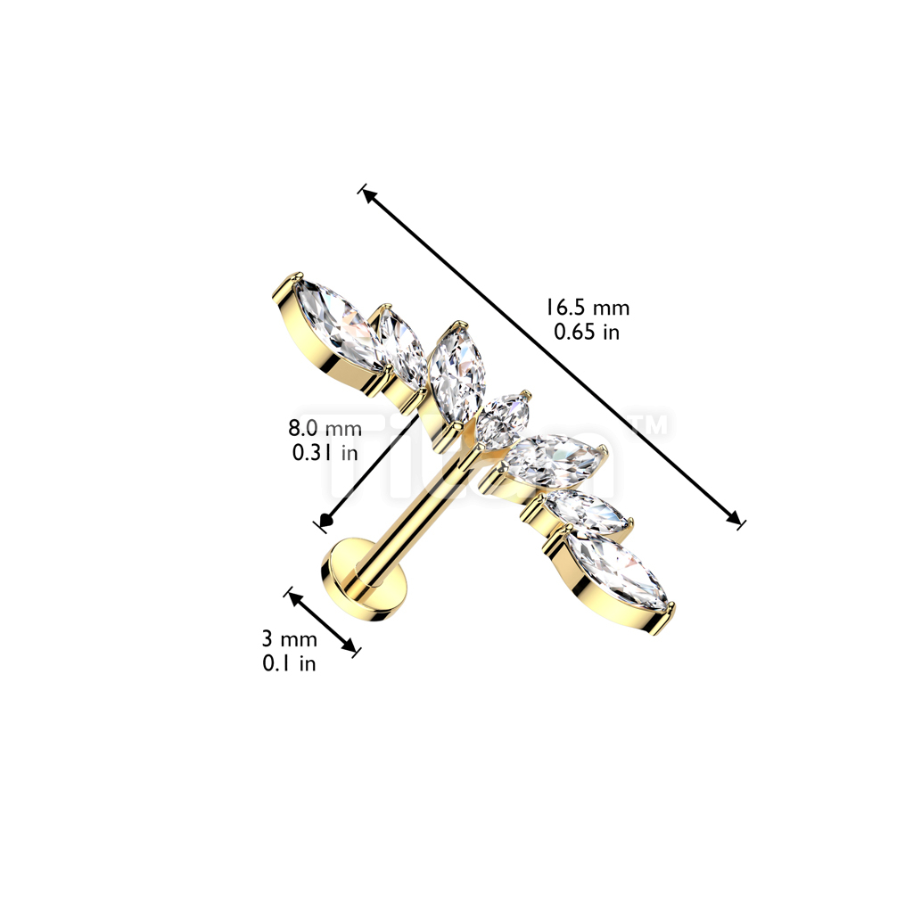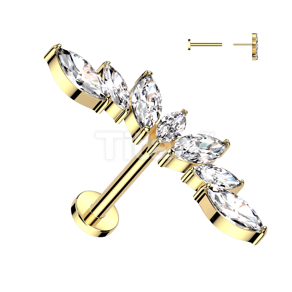 Implant Grade Titanium Threadless Push In Labret With 7 Marquise CZ Wide Fan Top