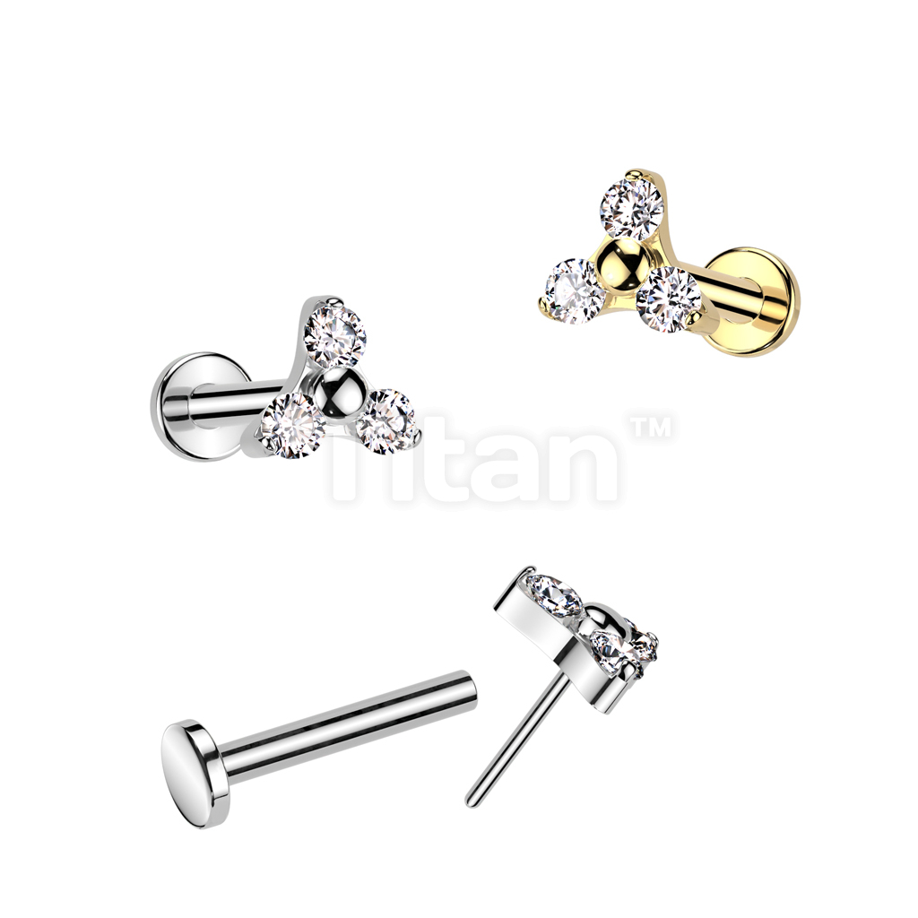 Implant Grade Titanium Threadless Push in Labret With Prong Set CZ Trinity Top