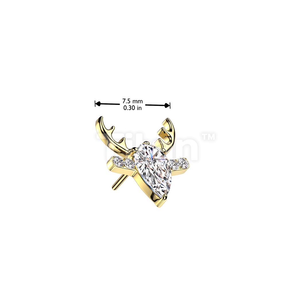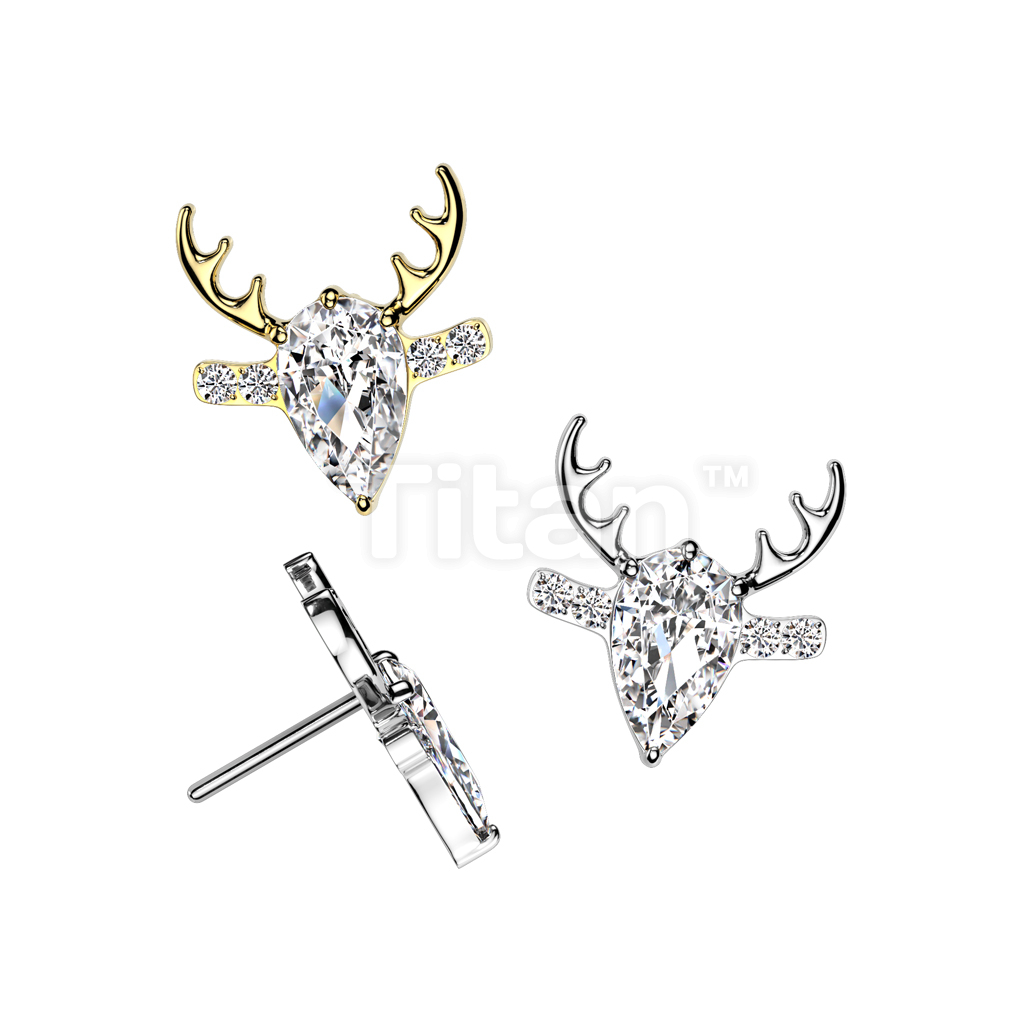 Implant Grade Titanium Threadless Push In CZ Reindeer Head Top