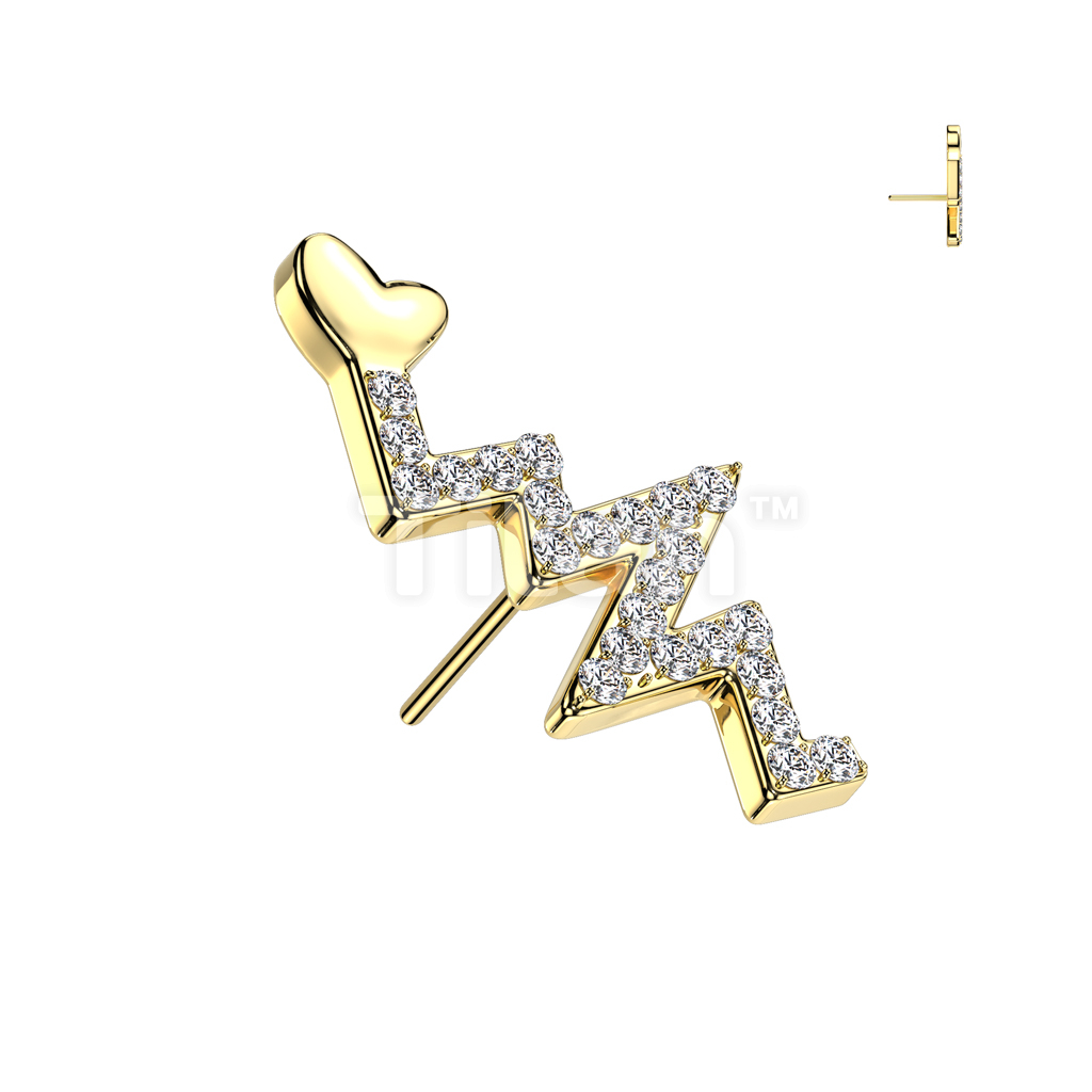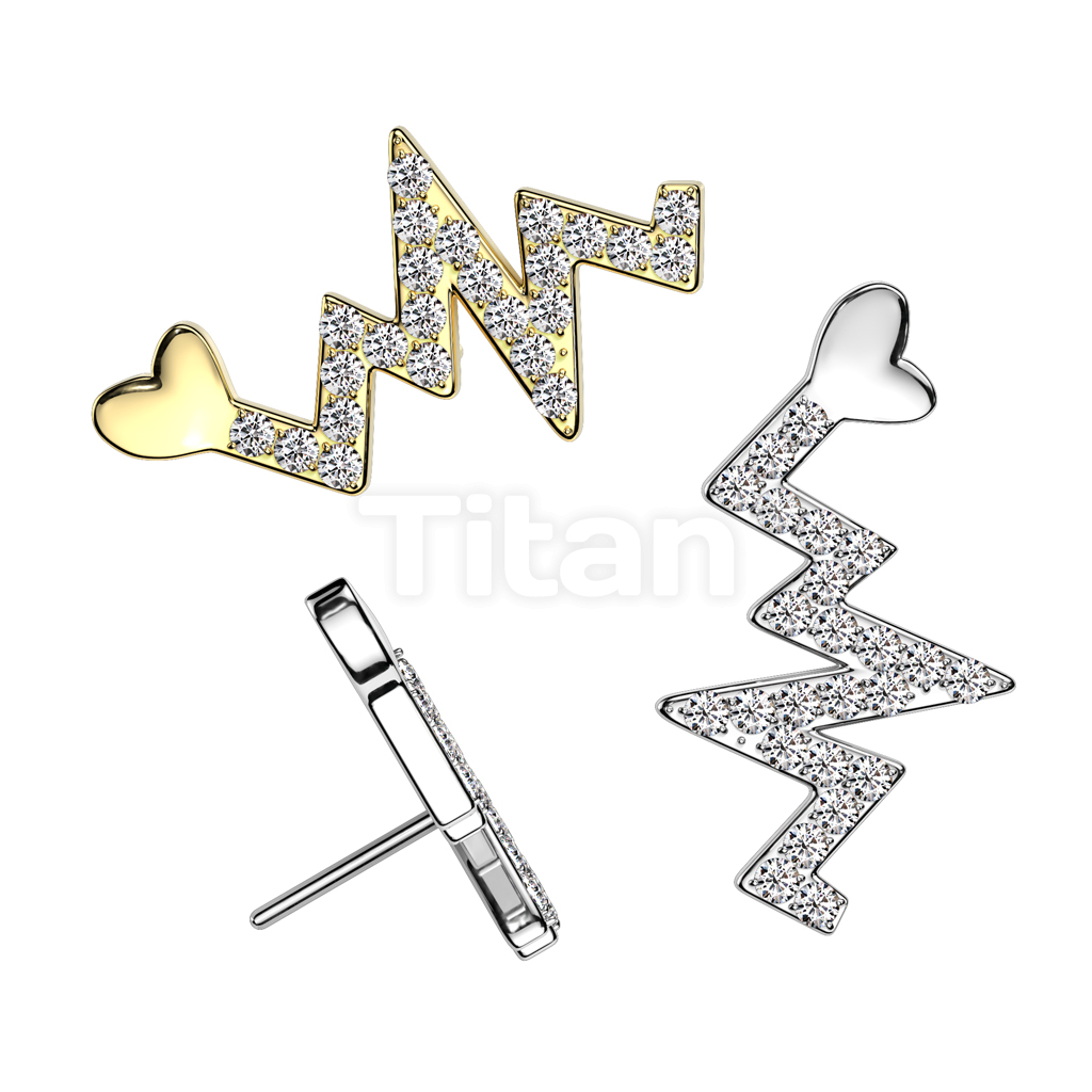 Implant Grade Titanium Threadless Push In CNC Pave CZ Heartbeat