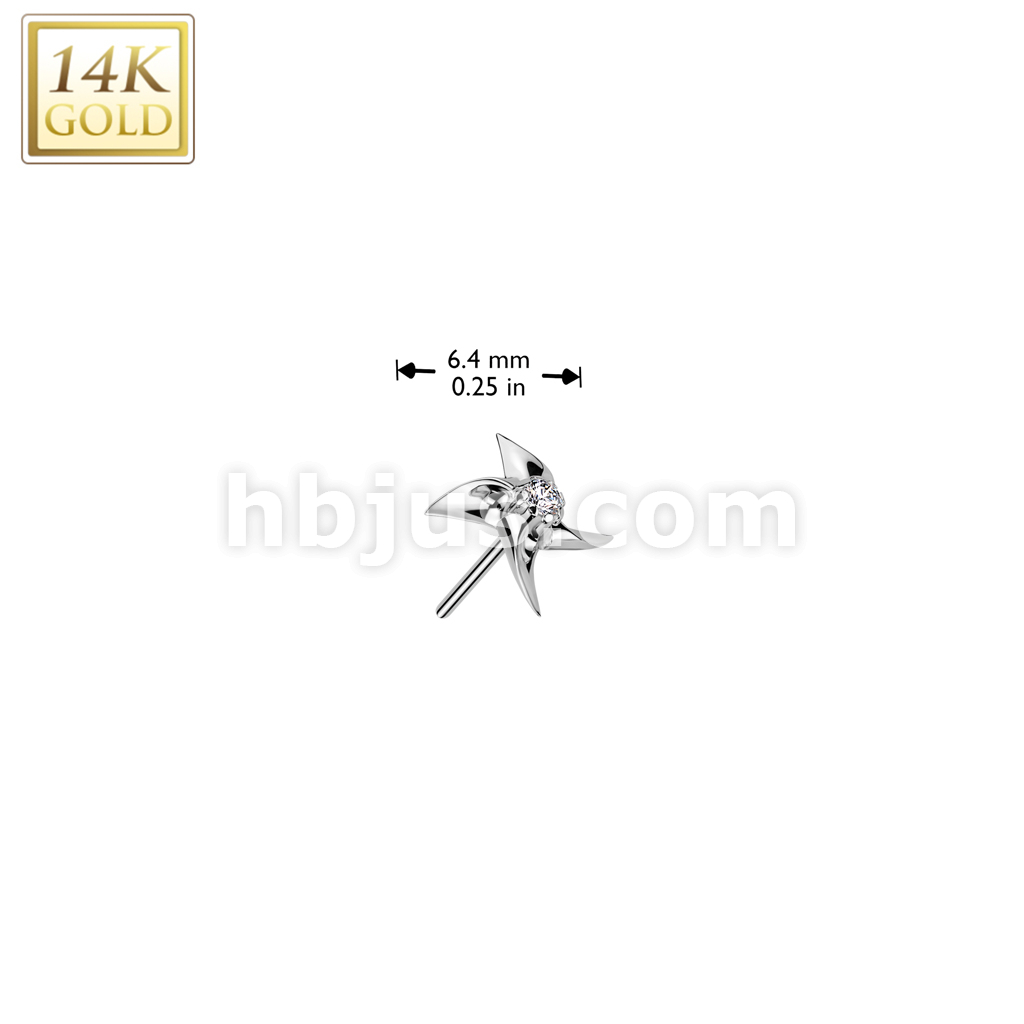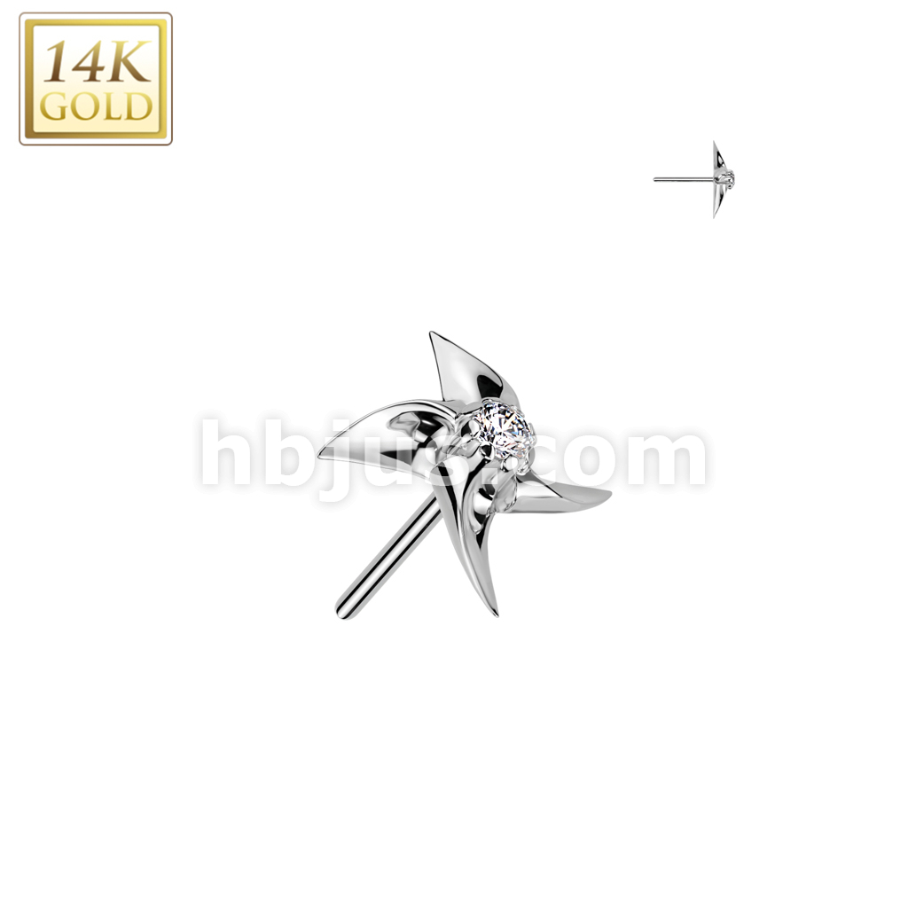 14K Gold Threadless Push In Pinwheel With CZ Center Top