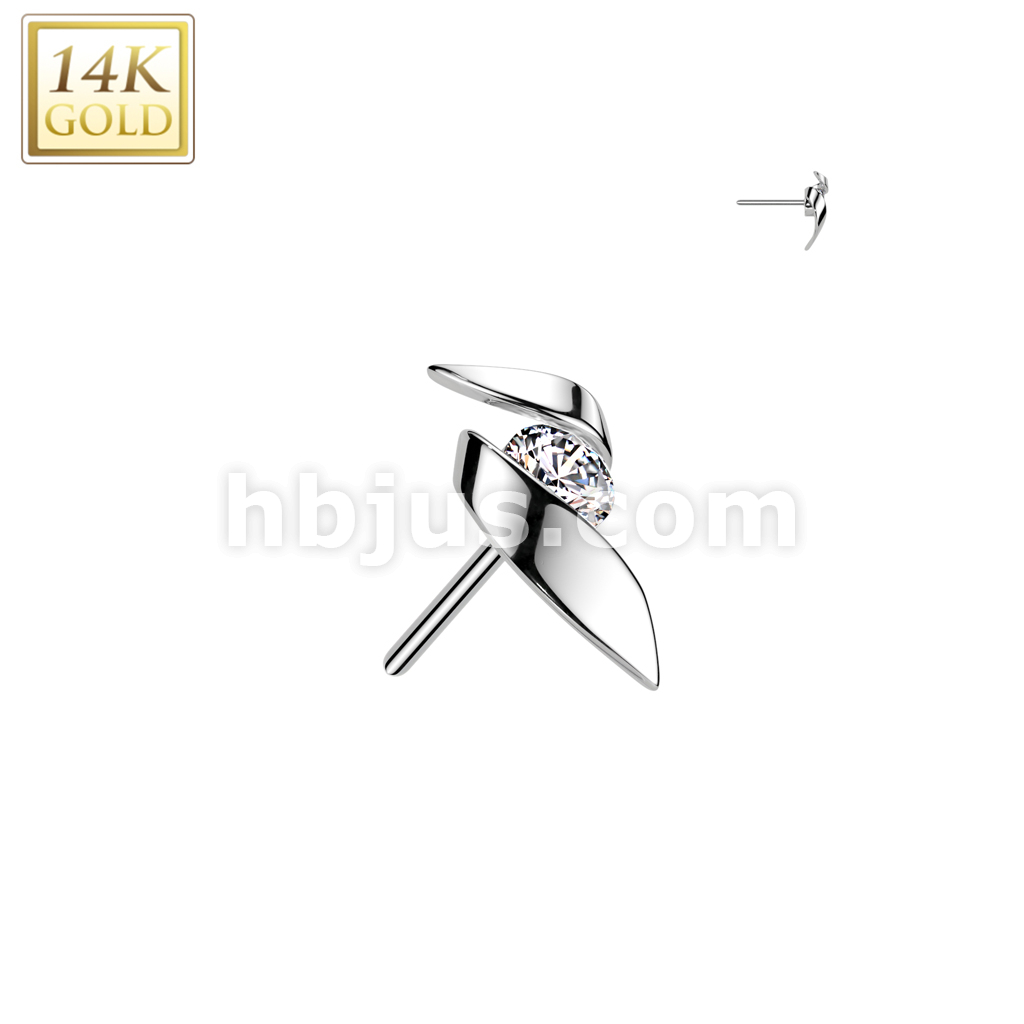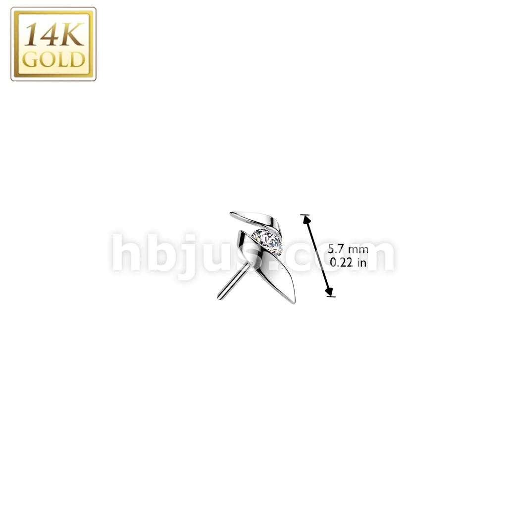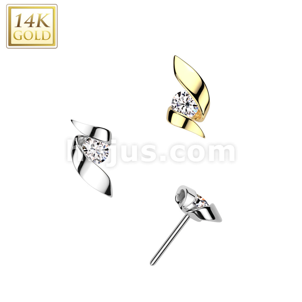 14K Gold Threadless Push In Ribbon With CZ Center