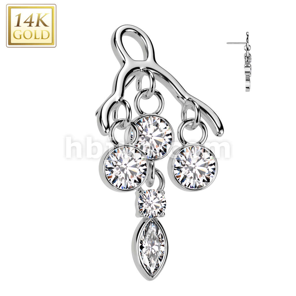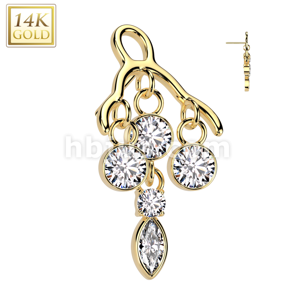 14K Gold Threadless Push In Bezel Set CZ Chandelier Top