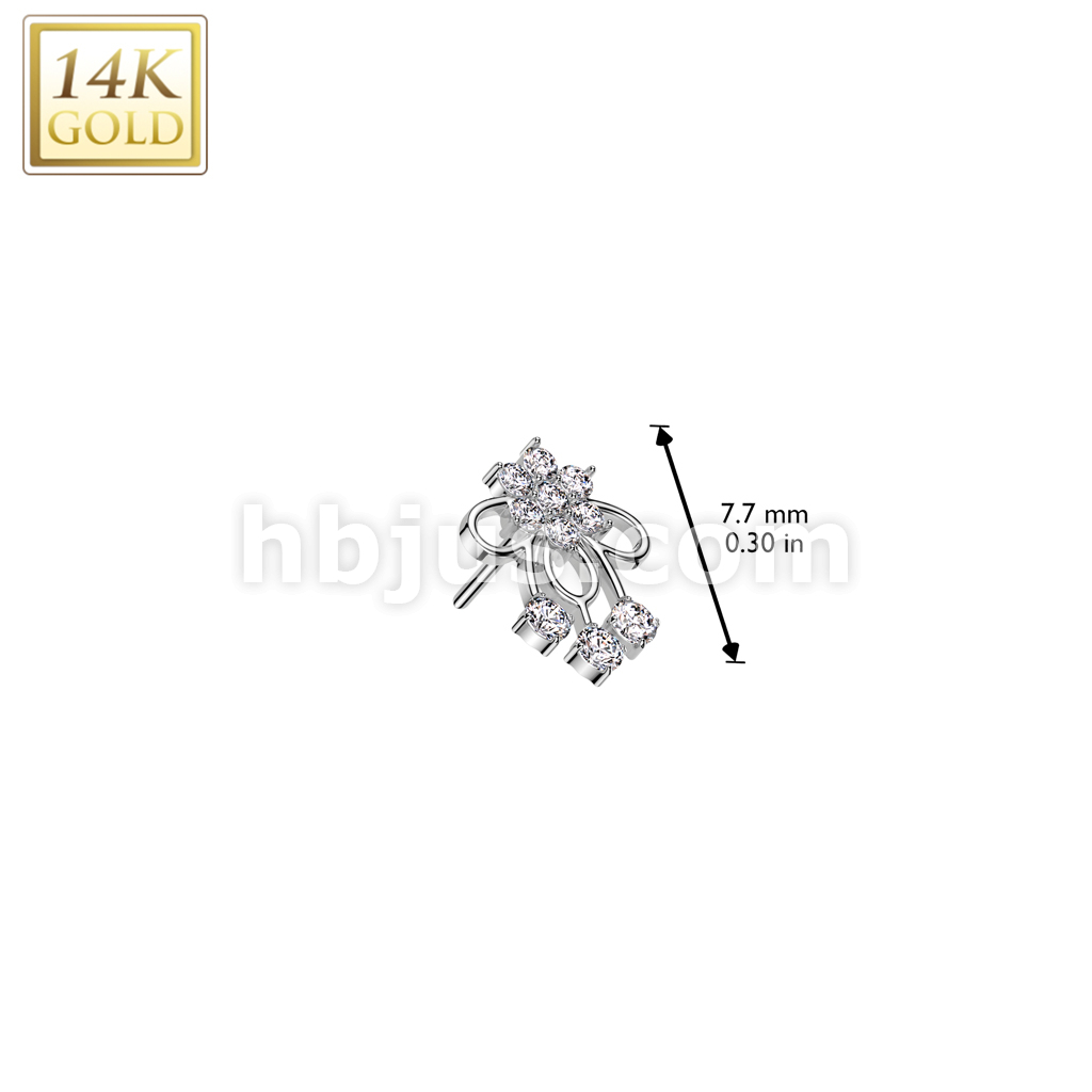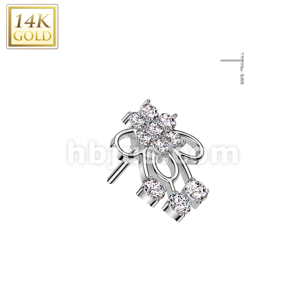 14K Gold Threadless Push In CZ Flower Ribbon Top