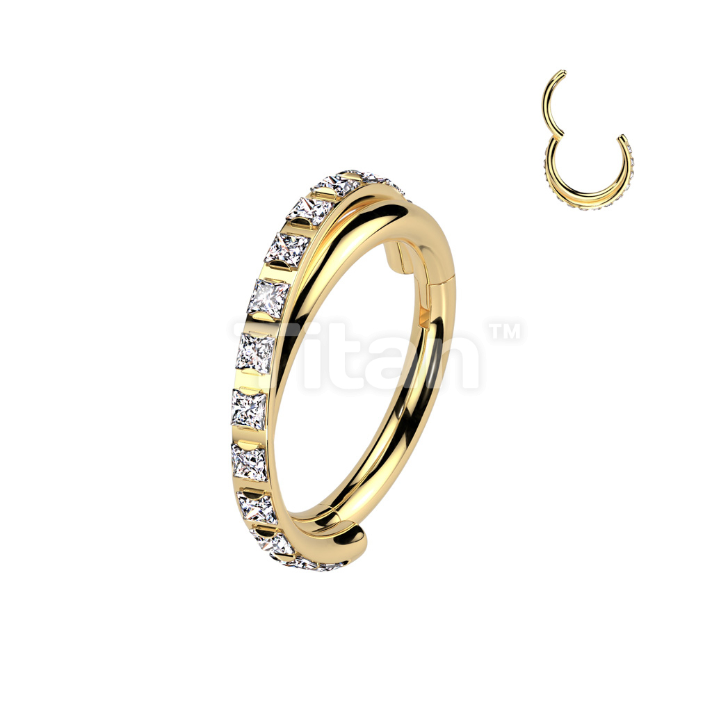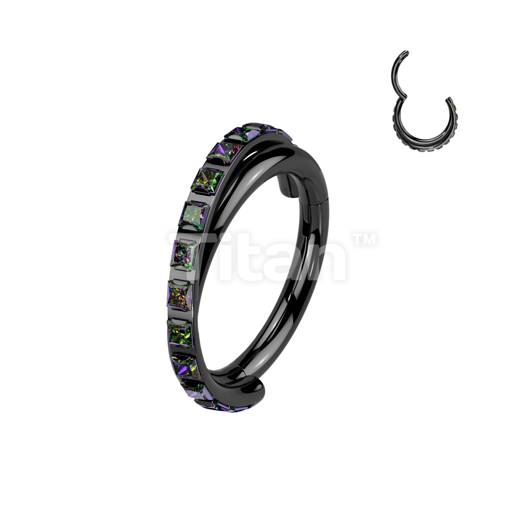 Implant Grade Titanium Hinged Segment Hoop Ring With Criss-Cross CNC Square CZ Paved Line