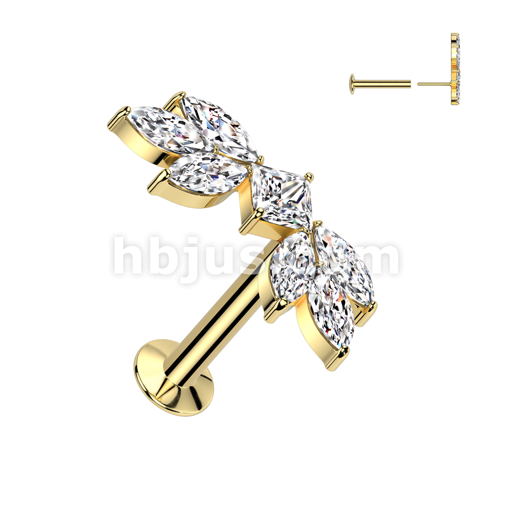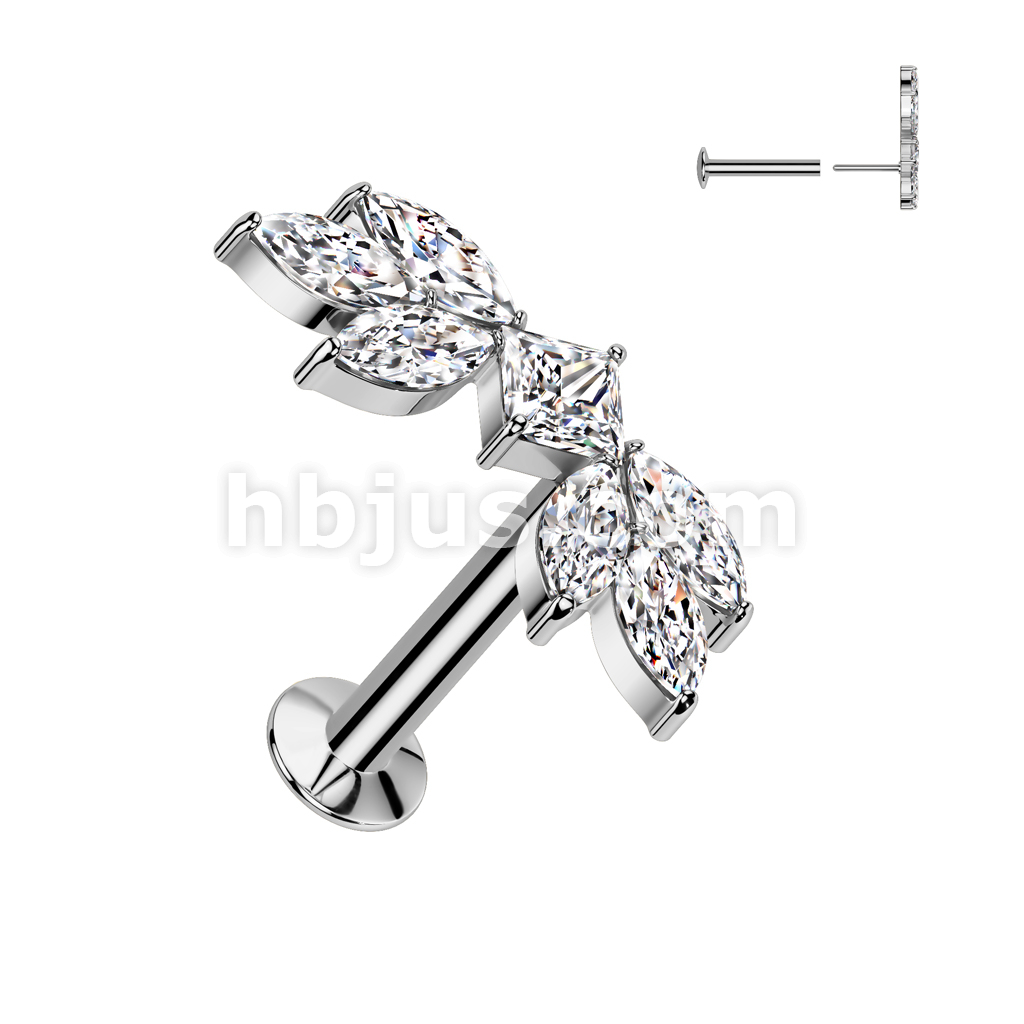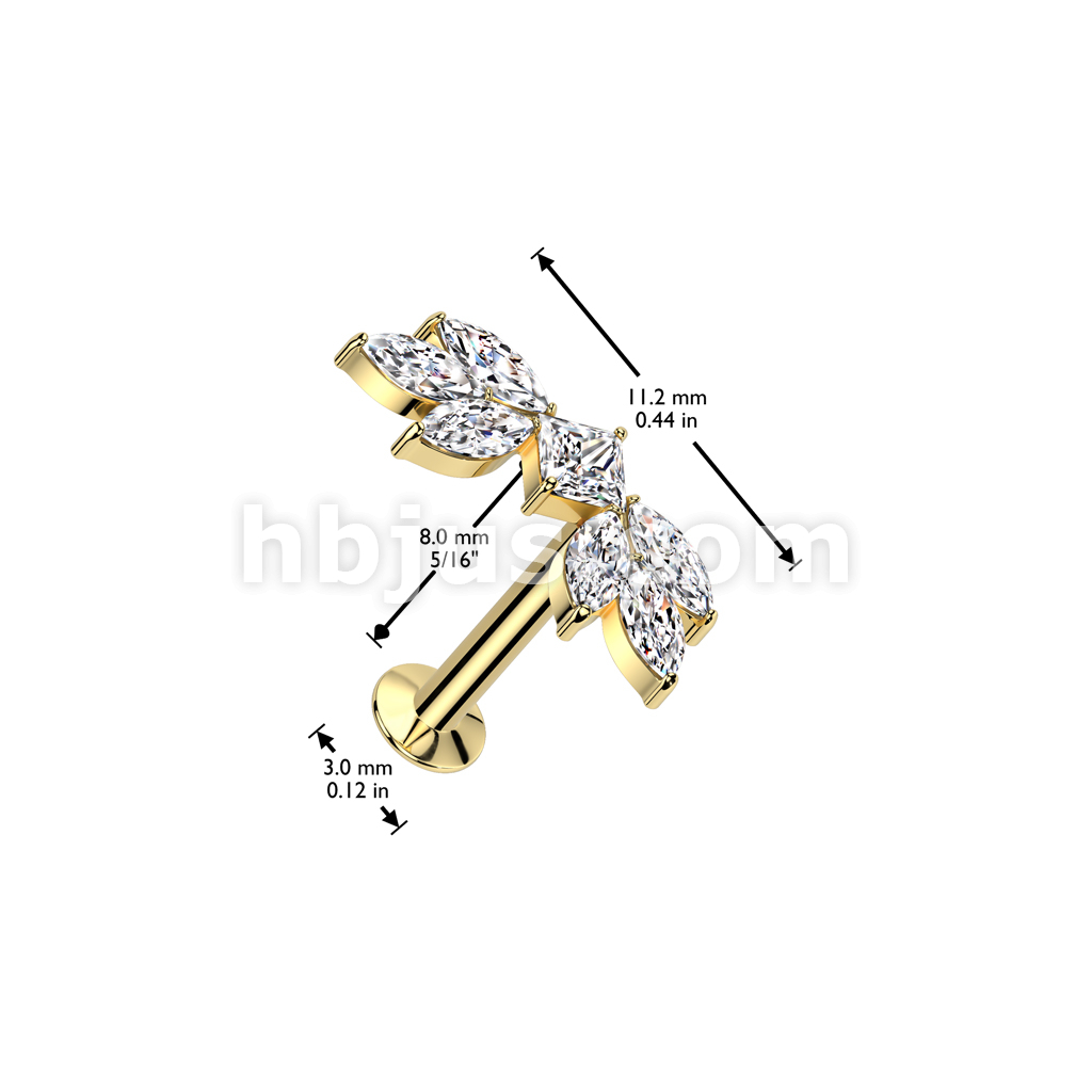 316L Surgical Steel Threadless Push In Flat Back Stud With Convex Back and Marquise CZ Wings Top