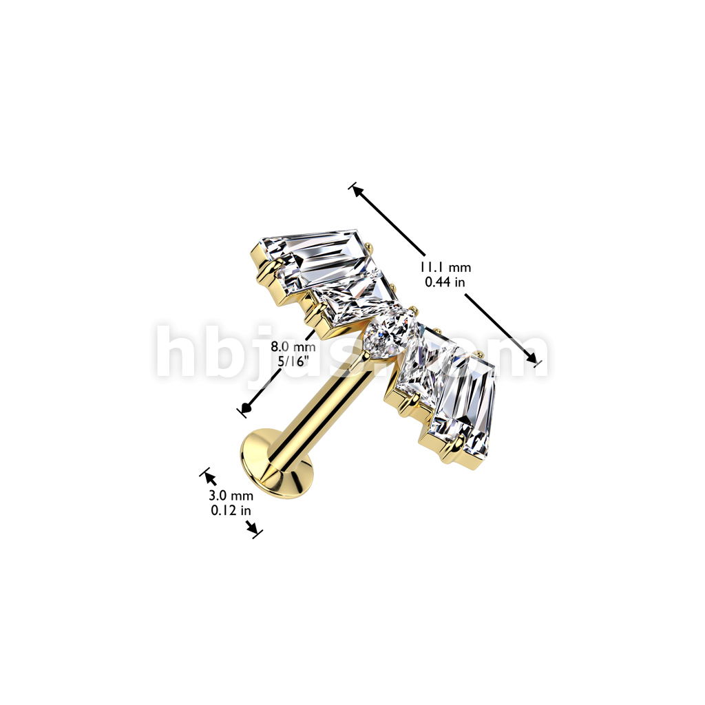 316L Surgical Steel Threadless Push In Flat Back Stud With Convex Back and CZ Baguette and CZ Marquise Center Fan Top