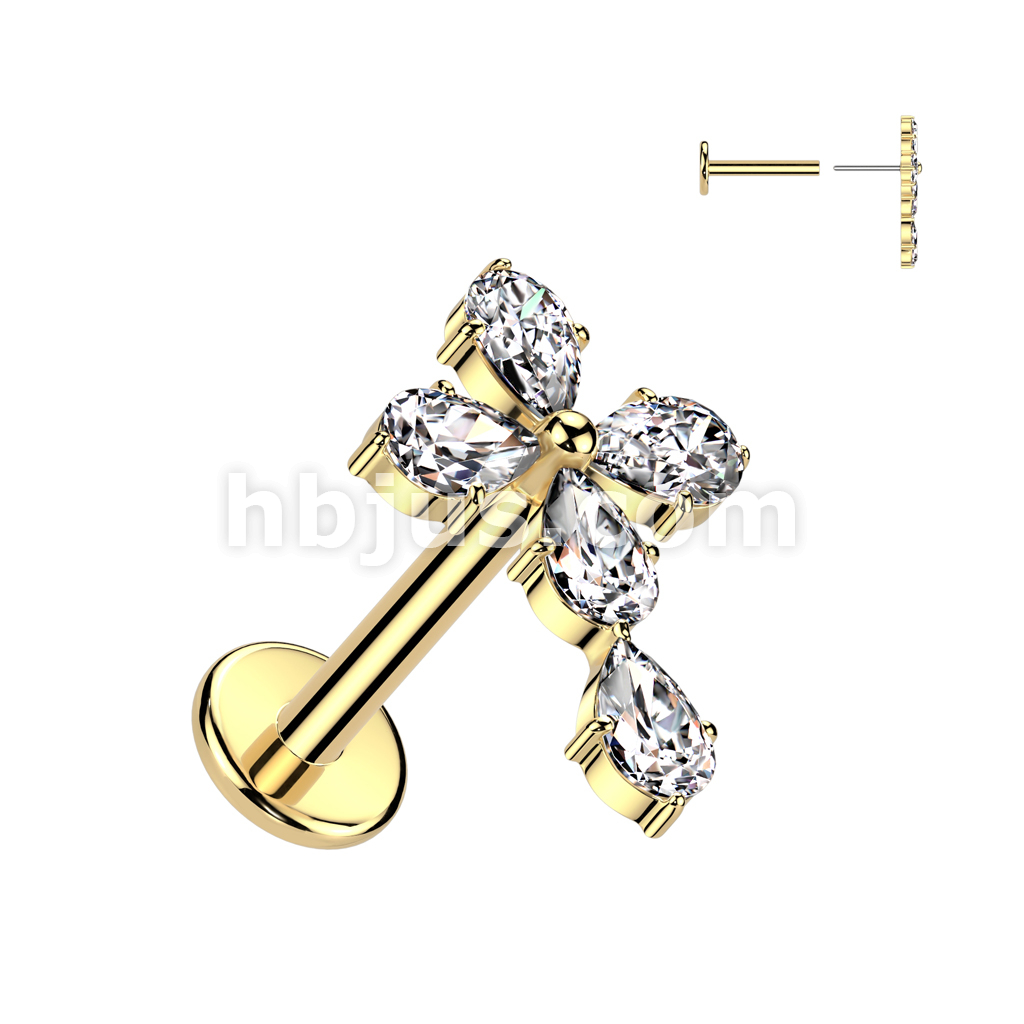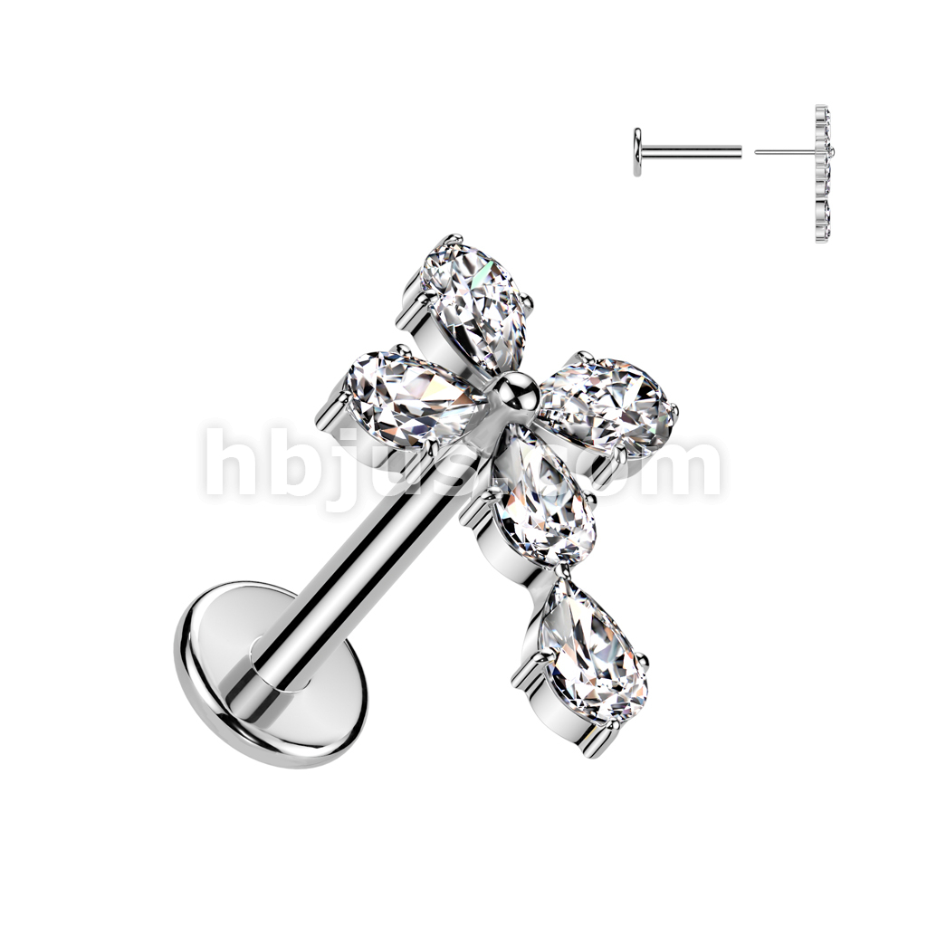 316L Surgical Steel Threadless Push In Flat Back Stud With CZ Celtic Cross Top
