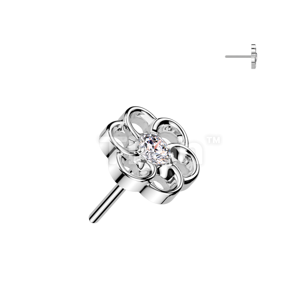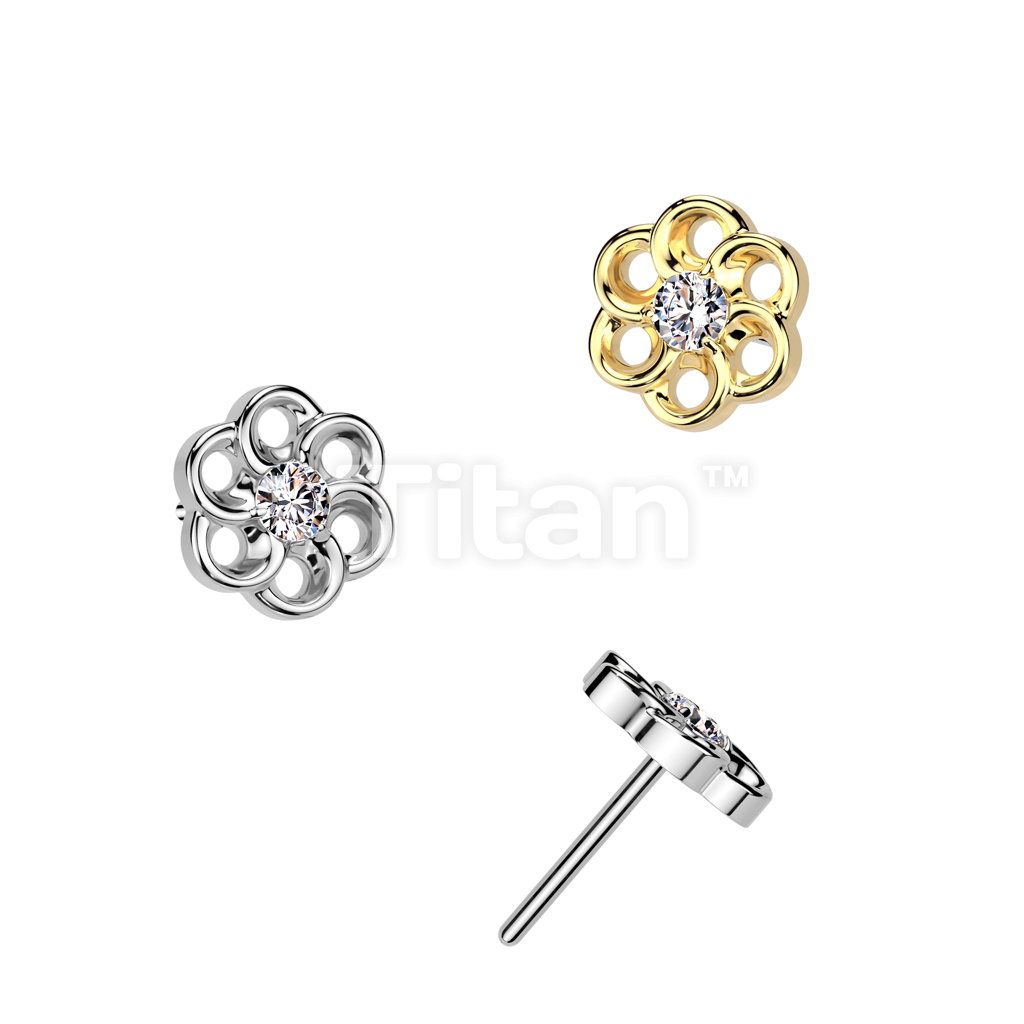Implant Grade Titanium Threadless Push In Small Hollow Swirl Flower Top With CZ Center