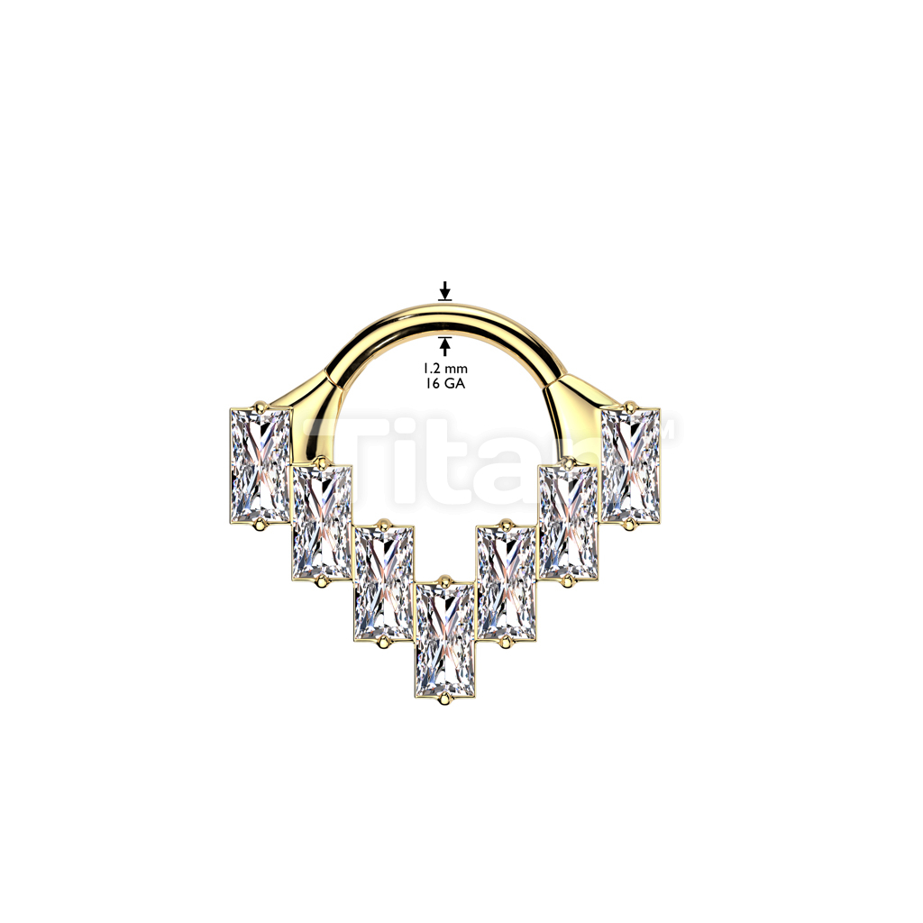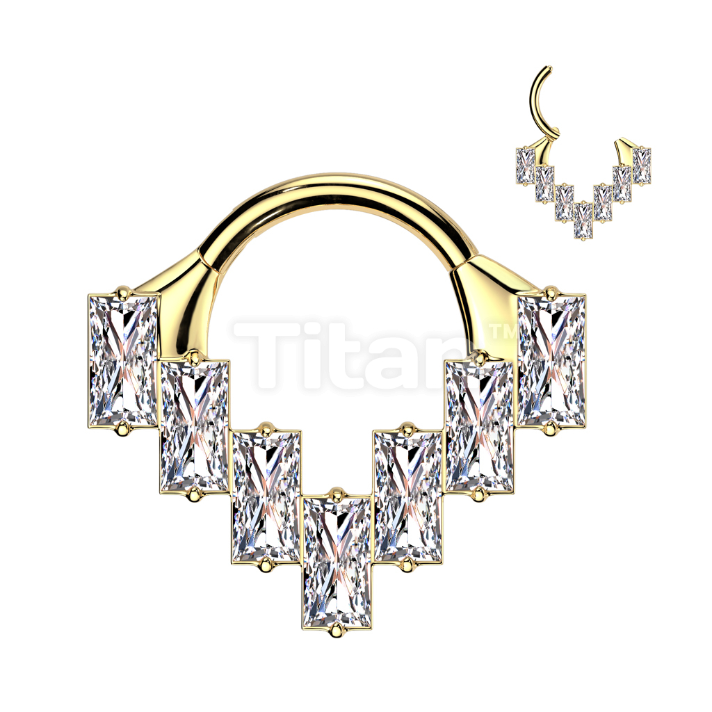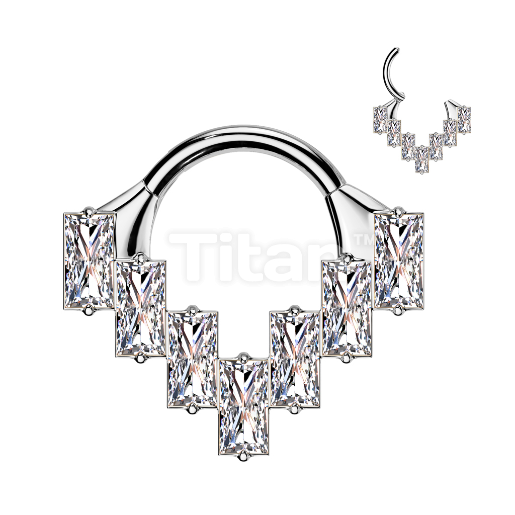 Implant Grade Titanium Baguette CZ Fan Hinged Segment Hoop Ring