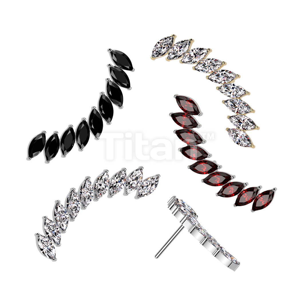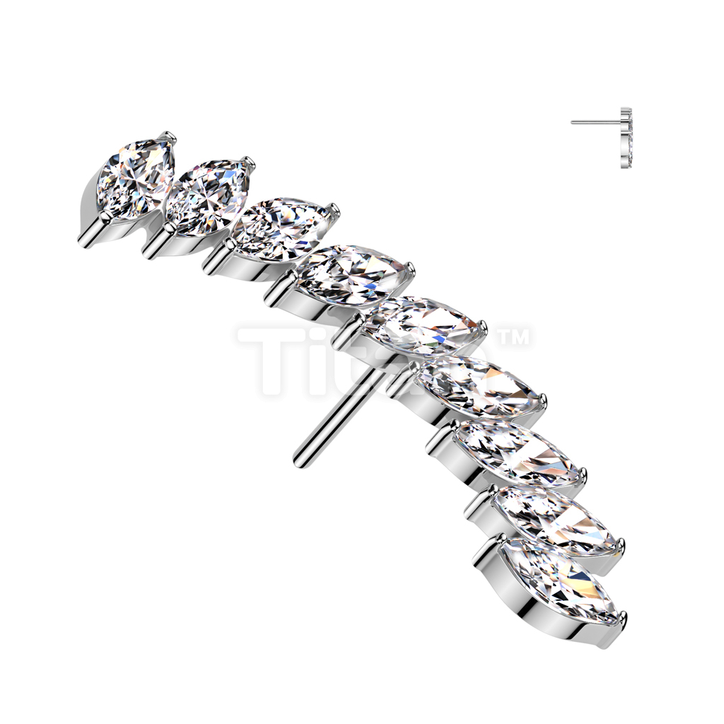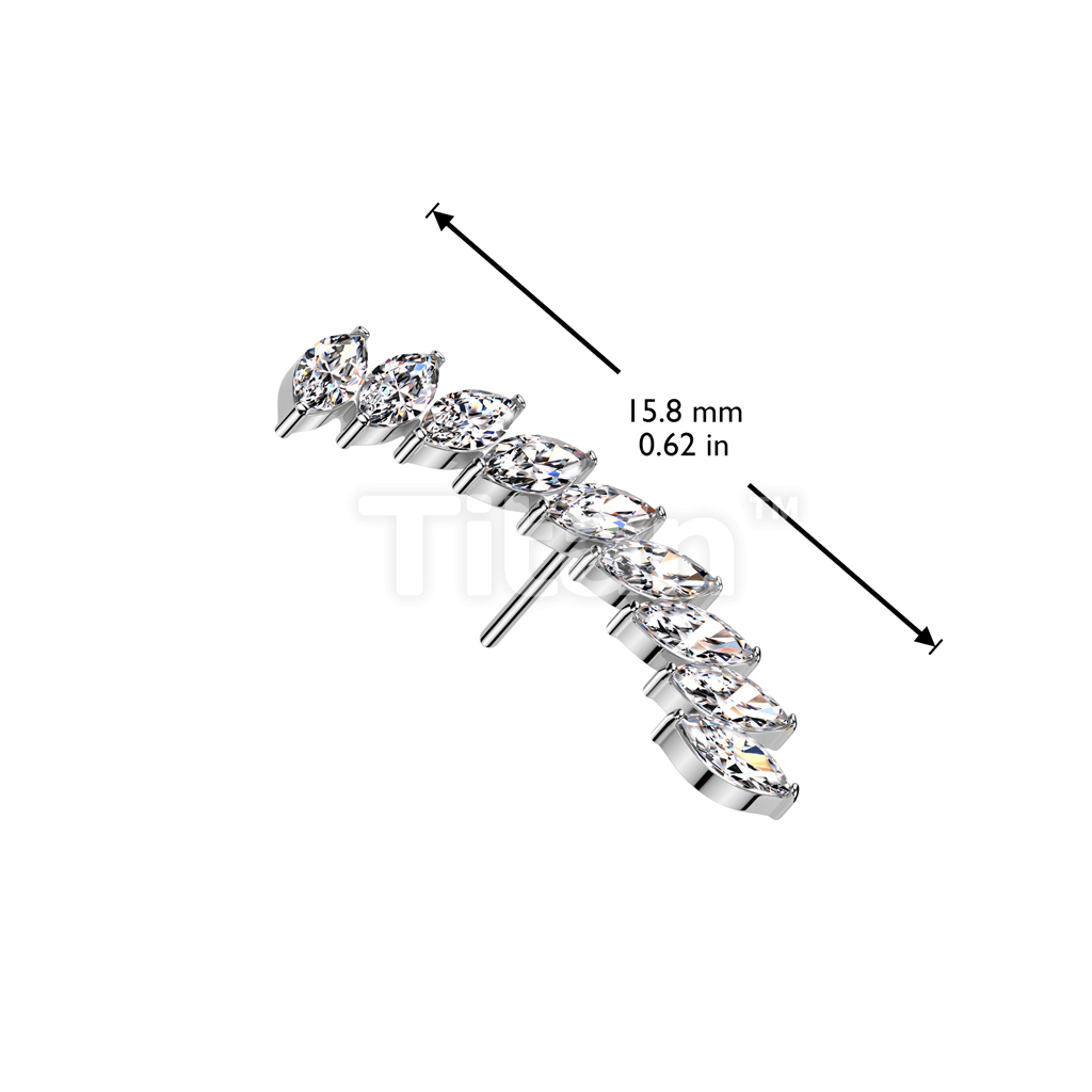 Implant Grade Titanium Threadless Push In Long Curved Marquise CZ Top
