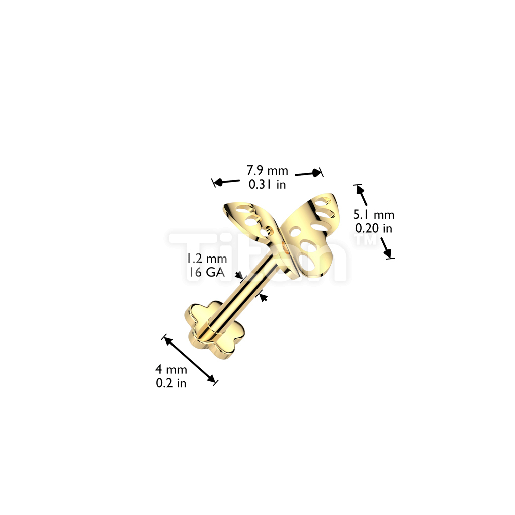 Implant Grade Titanium Threadless Push In Flower Base Flat Back Stud With Butterfly Top