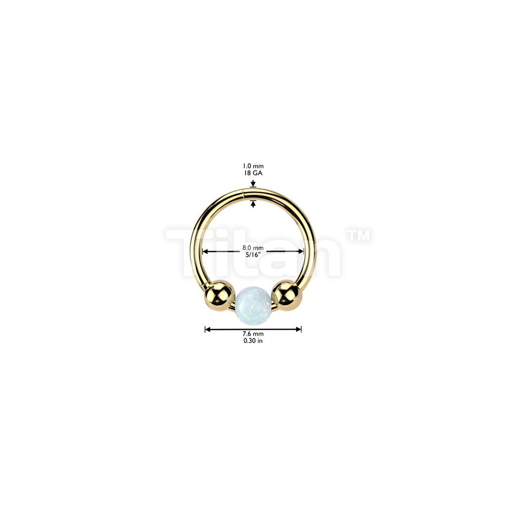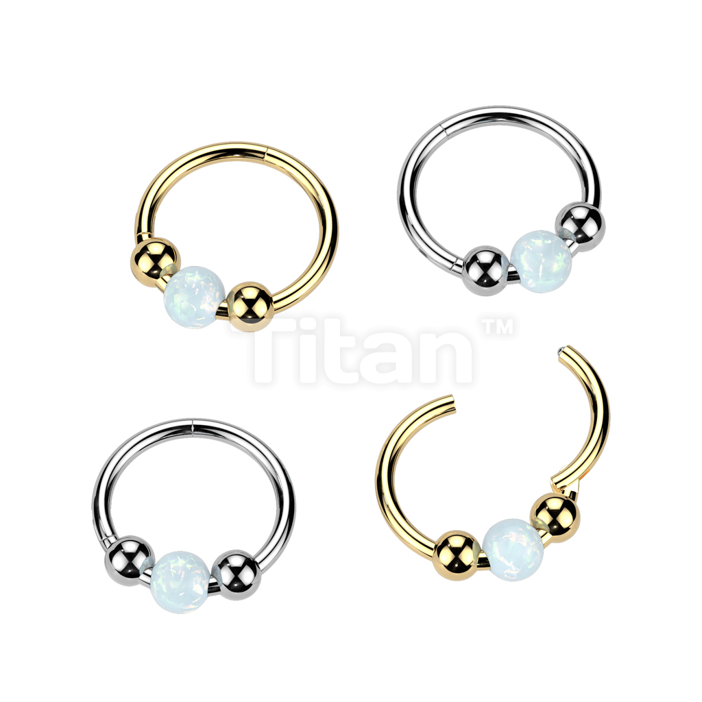 Implant Grade Titanium Hinged Segment Hoop Ring Opal Ball Centered 18ga Nose, Ear Hoops