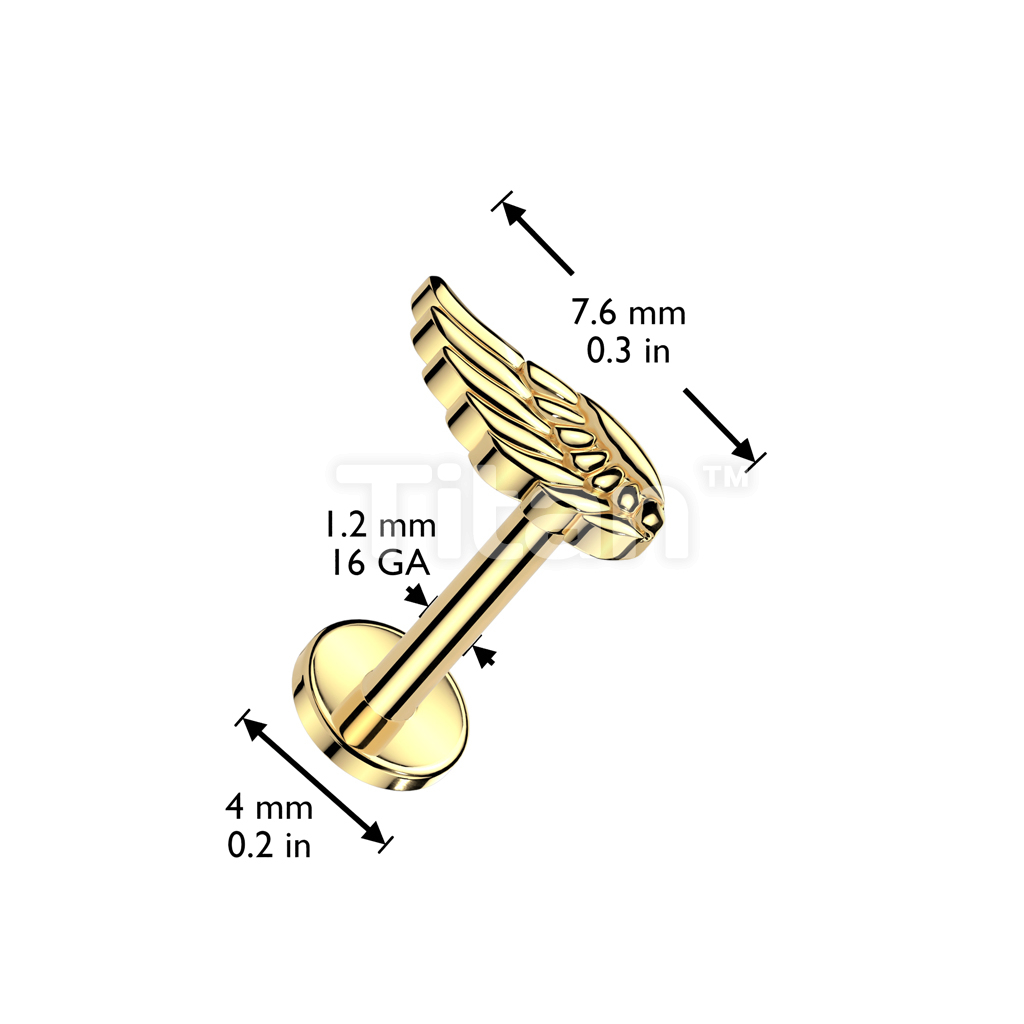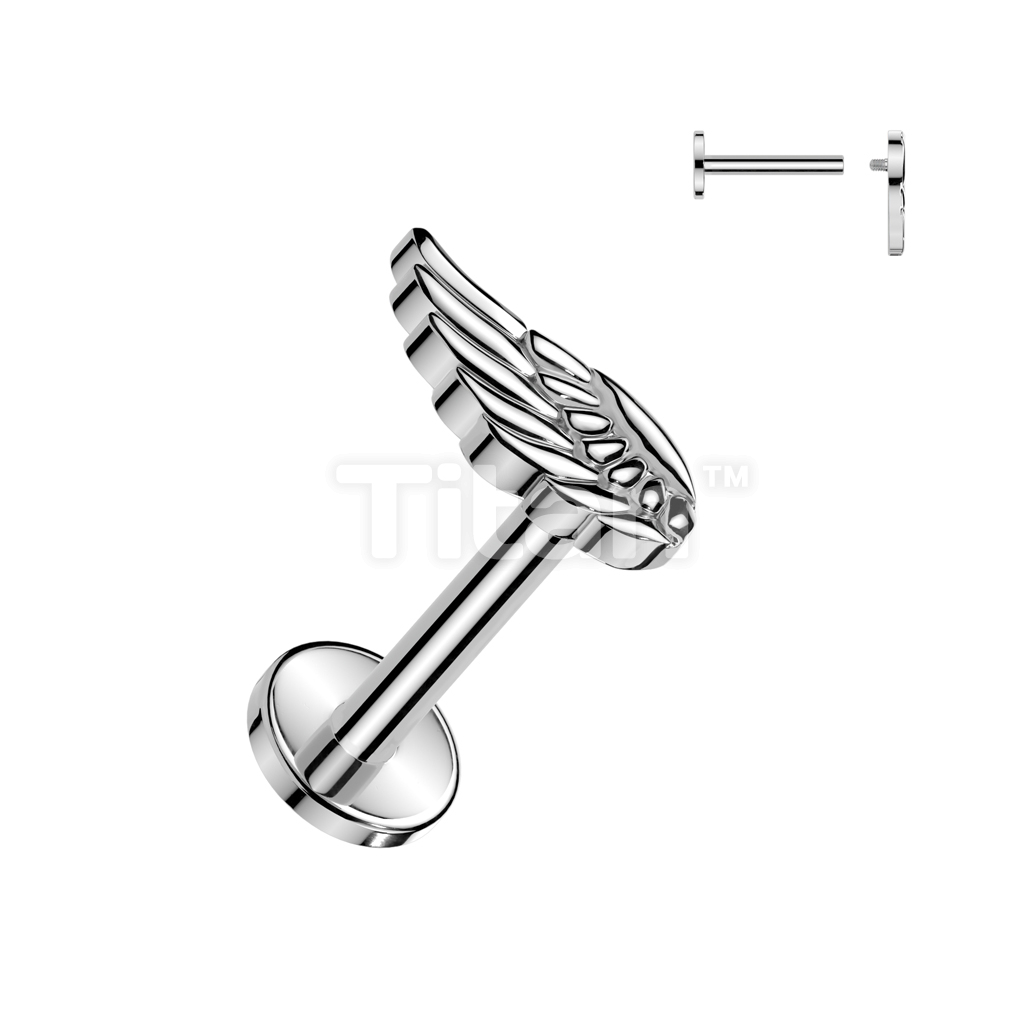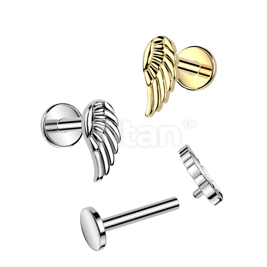 Implant Grade Titanium Internally Threaded Labret, Flat Back Stud With Angel Wing Top