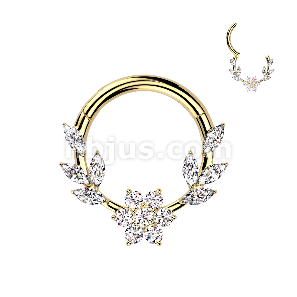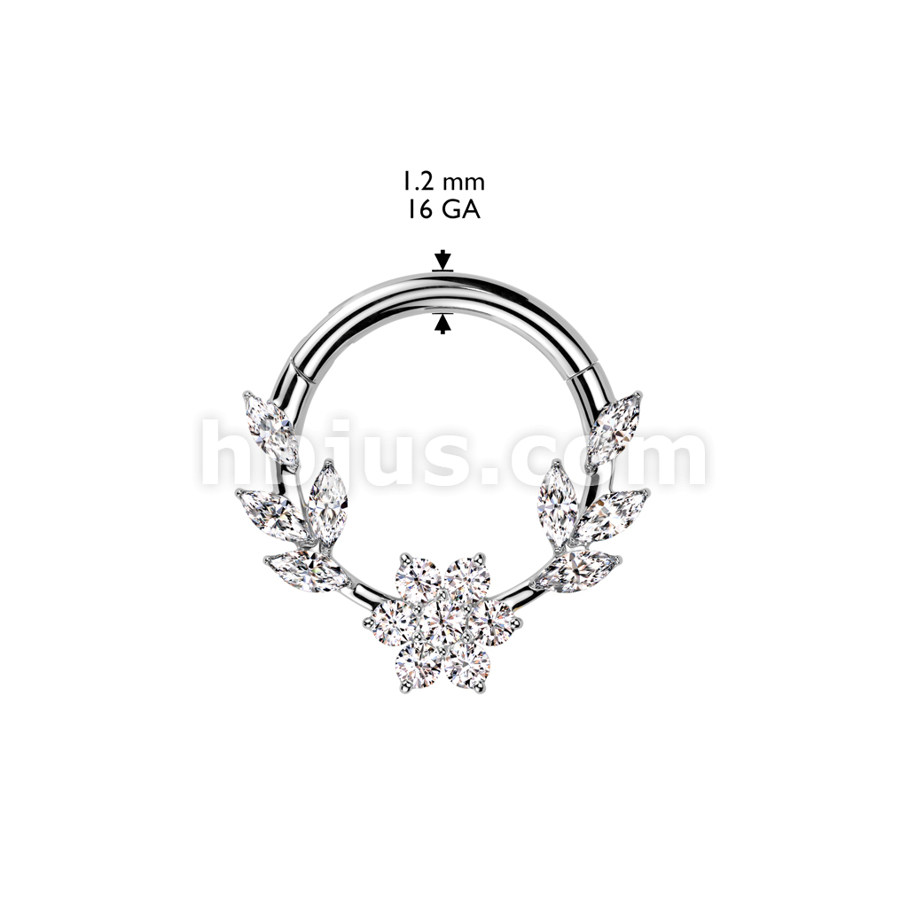 High Quality Precision All 316L Surgical Steel Flower CZ Center Hinged Segment Hoop Ring With Marquise CZ Vines