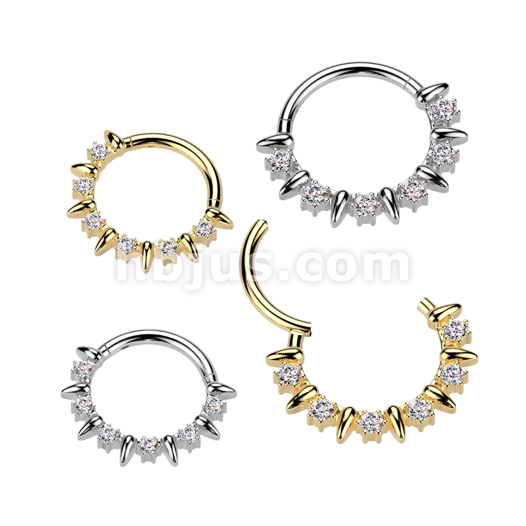 High Quality Precision All 316L Surgical Steel Forward Facing CZ Hinged Segment Hoop Ring
