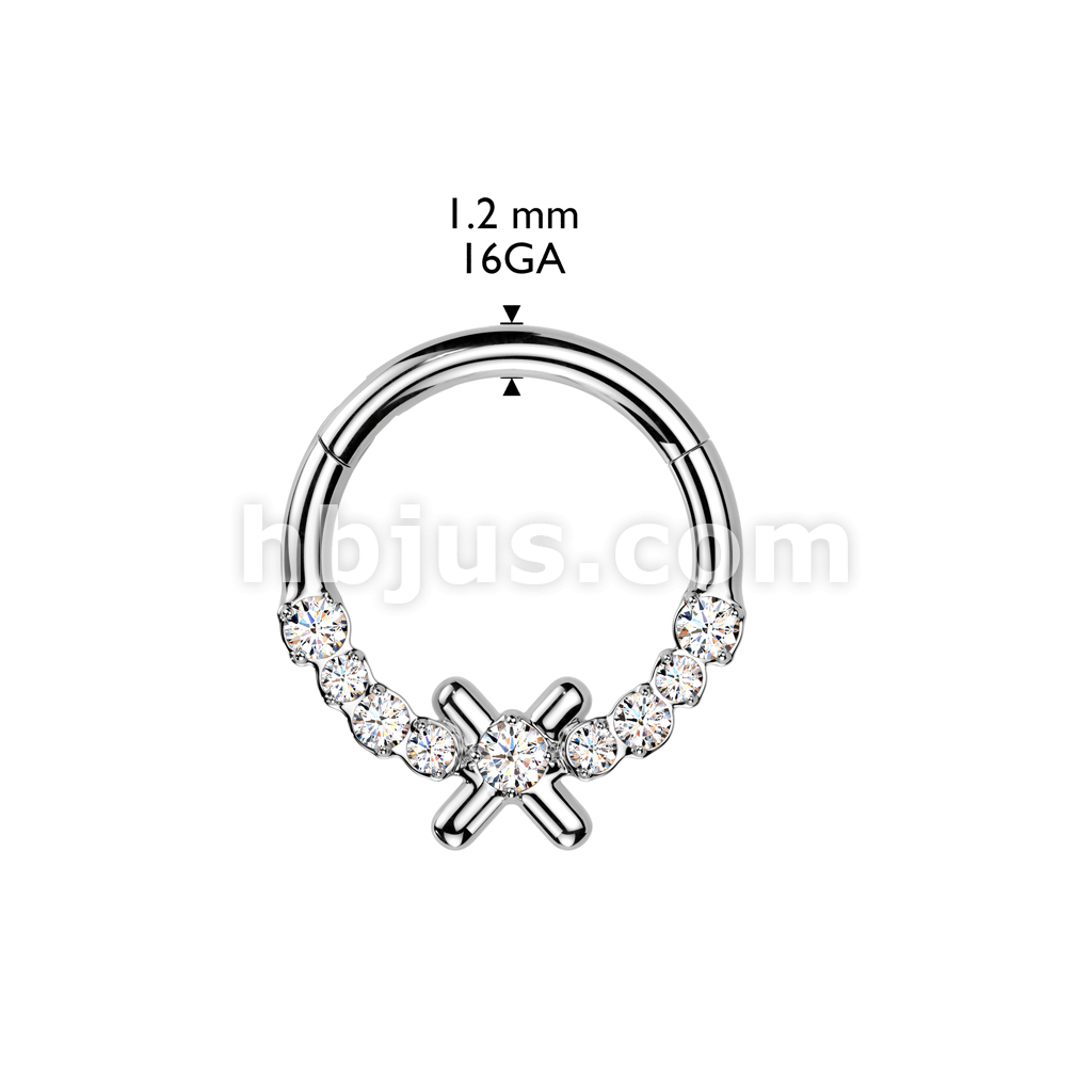 High Quality Precision All 316L Surgical Steel X CZ Center Hinged Segment Hoop Ring With Pave CZ Sides