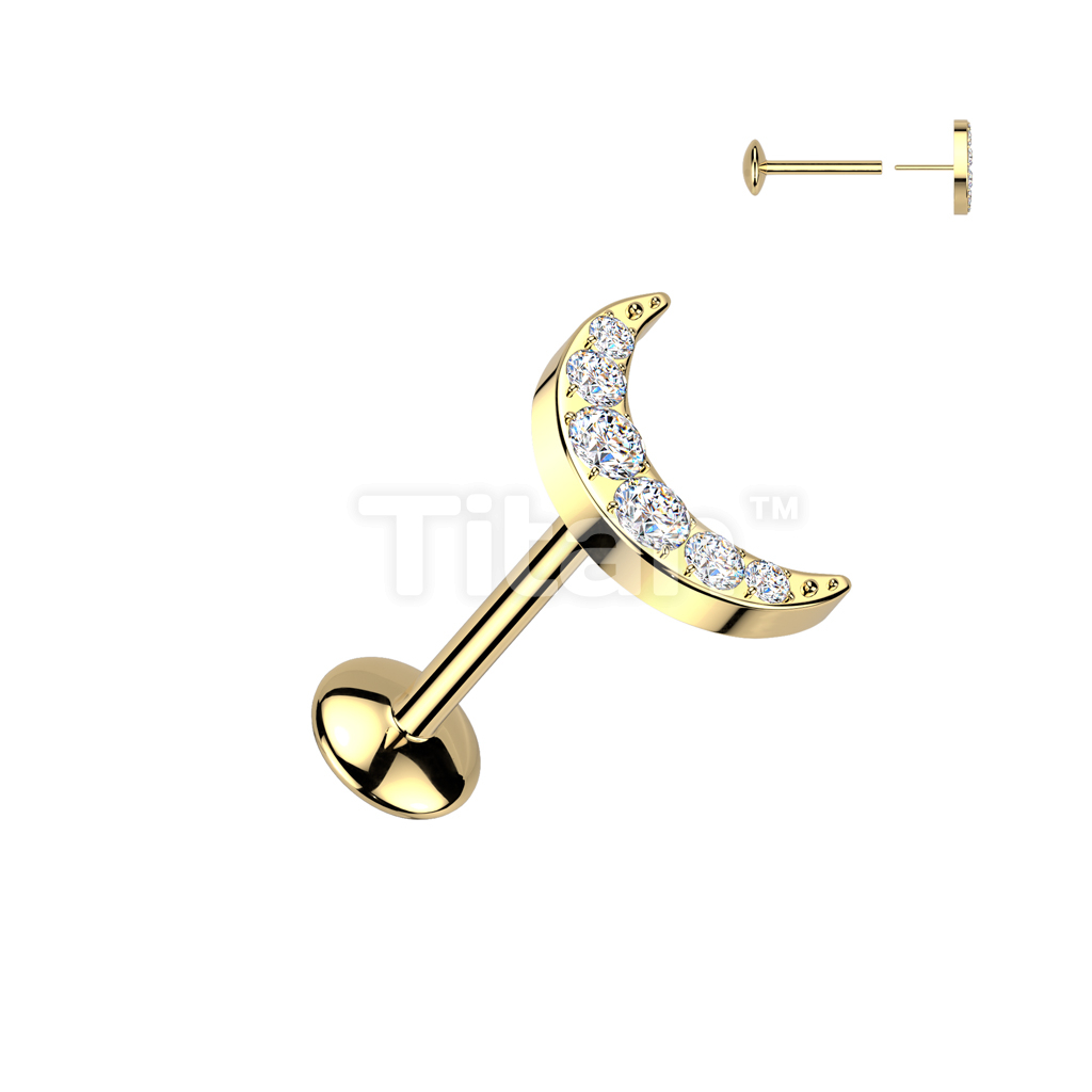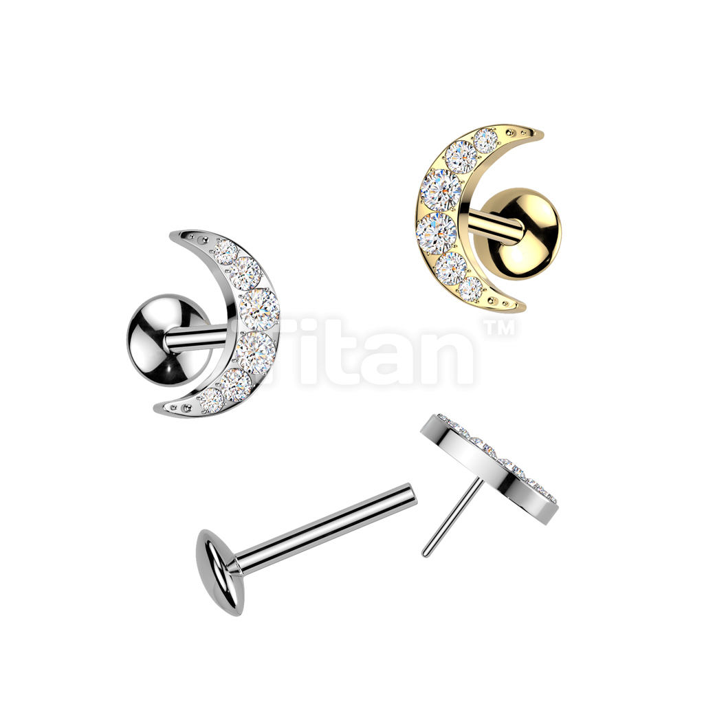 Implant Grade Titanium Threadless Push In Convex Base Stud With 6 CNC Set CZ Crescent Moon Top