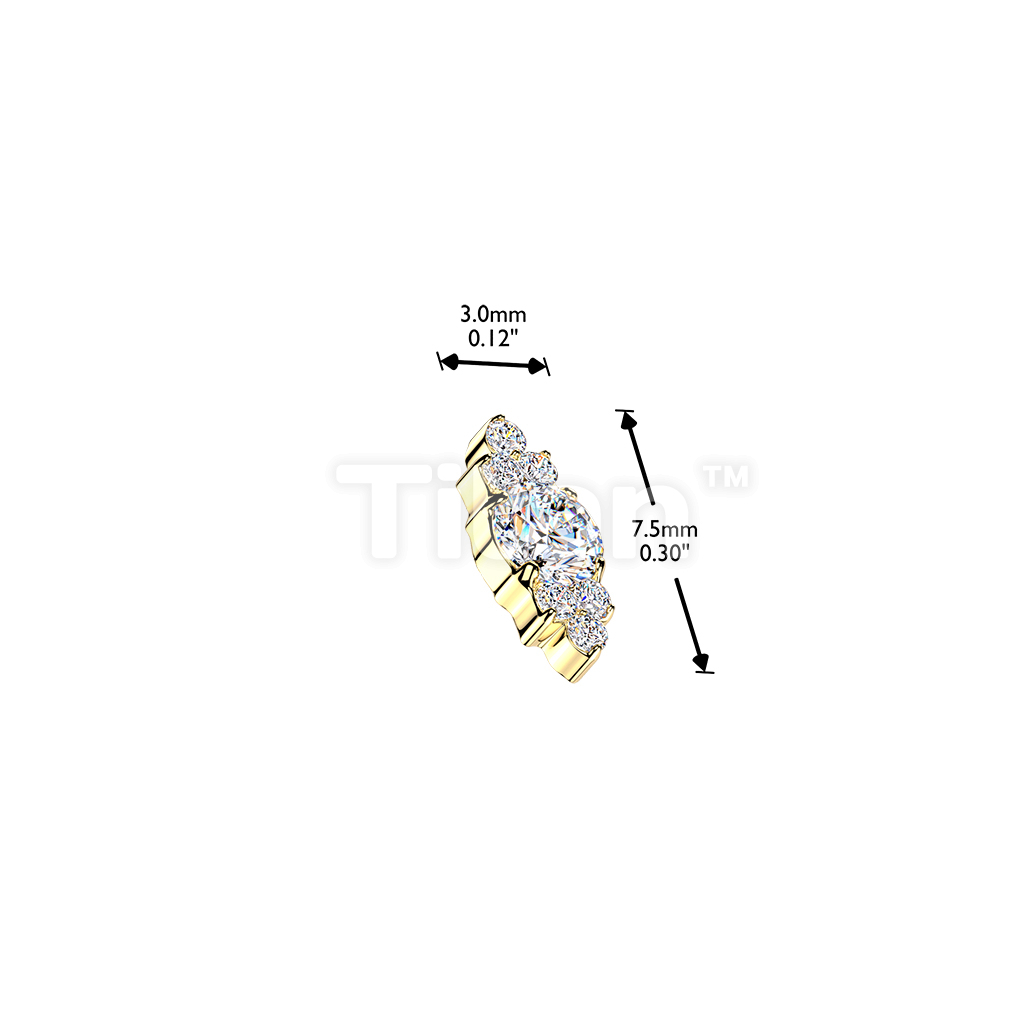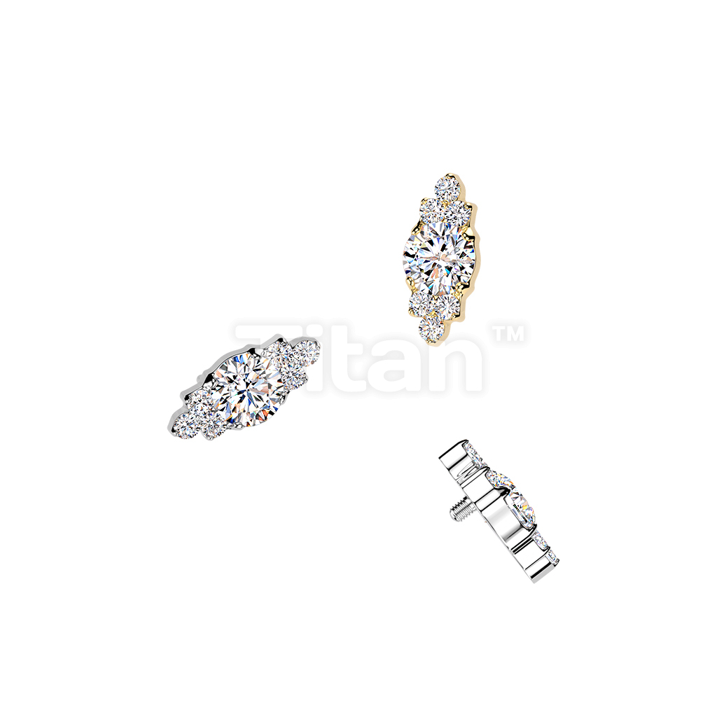Titanium Internally Threaded Round CZ Top With Trinity CZ Clusters