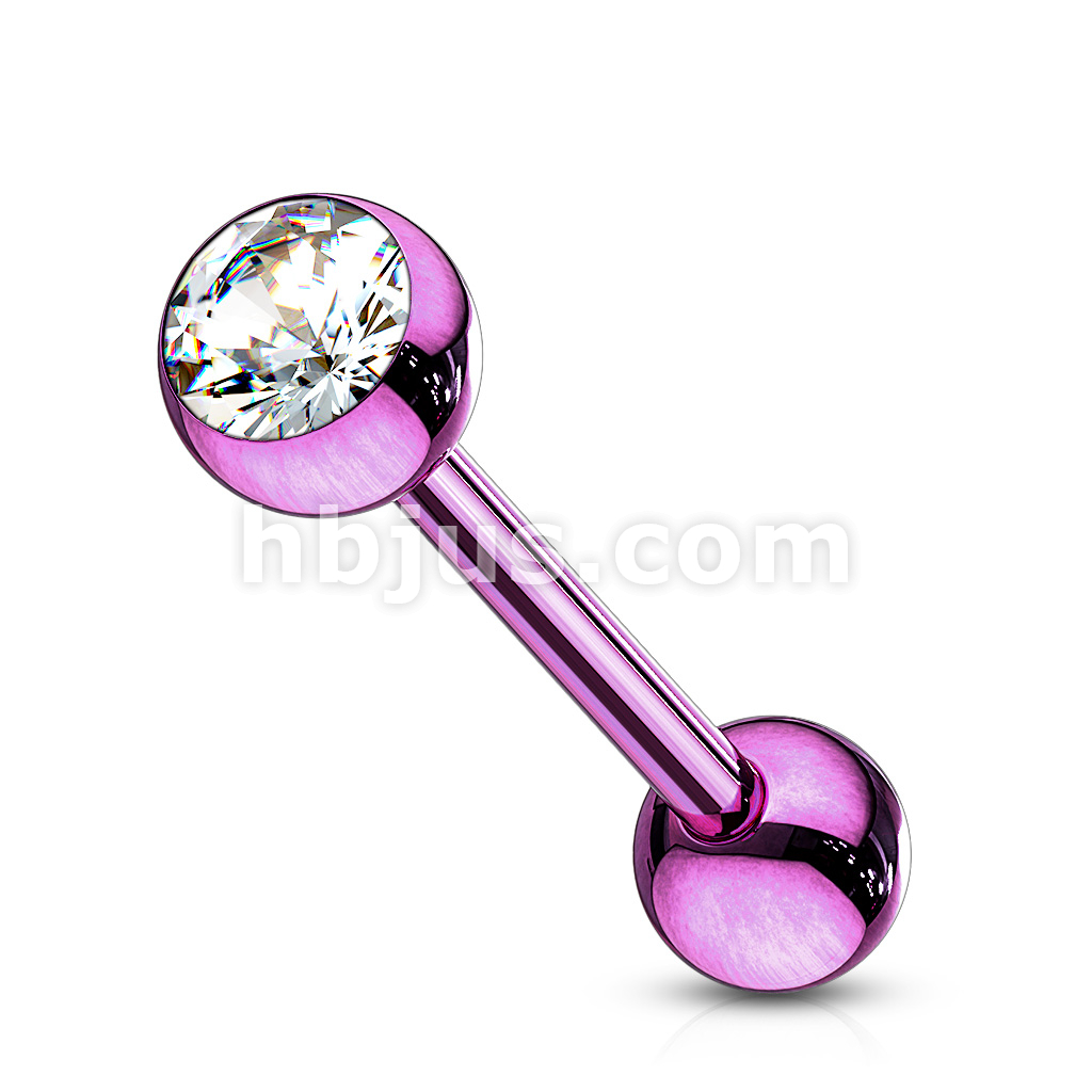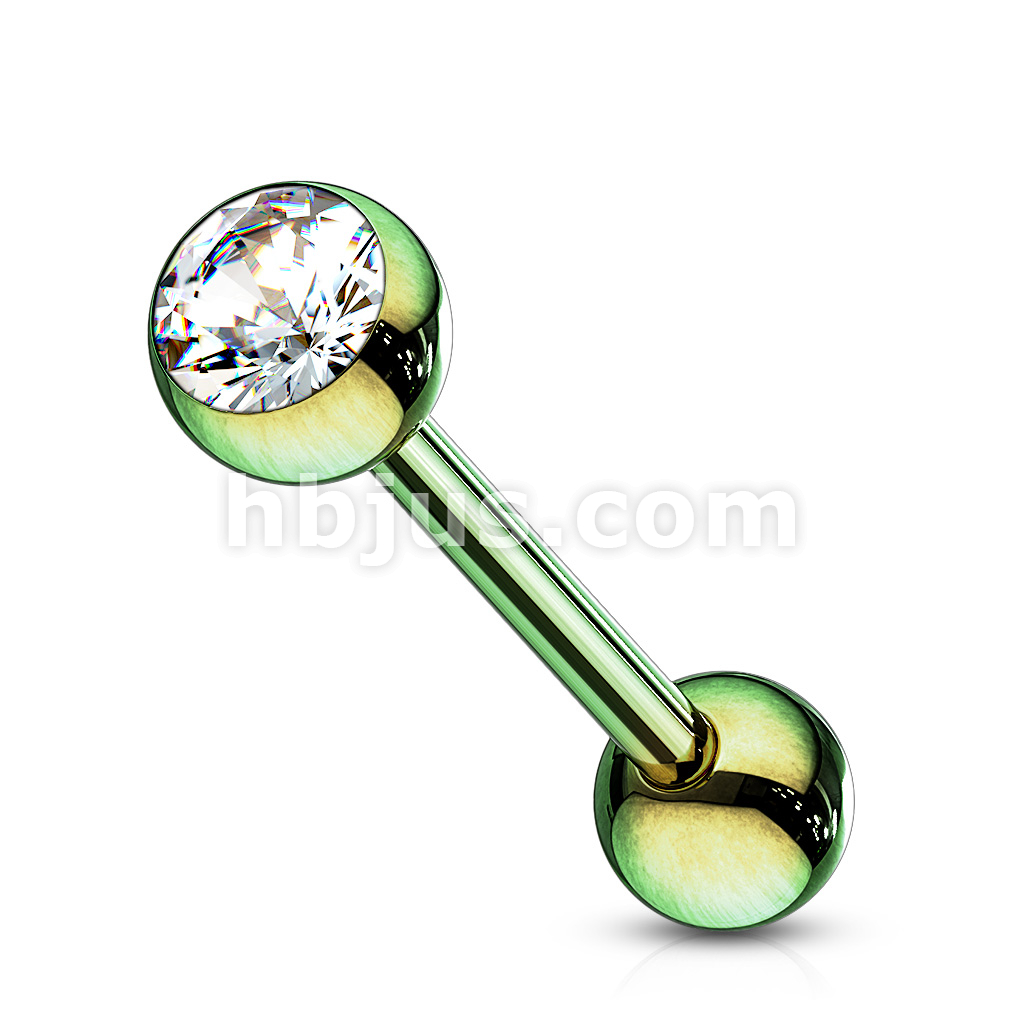 Press Fit Gem Ball Top PVD Over 316L Stainless Steel Barbells for Tongue, Tragus and more