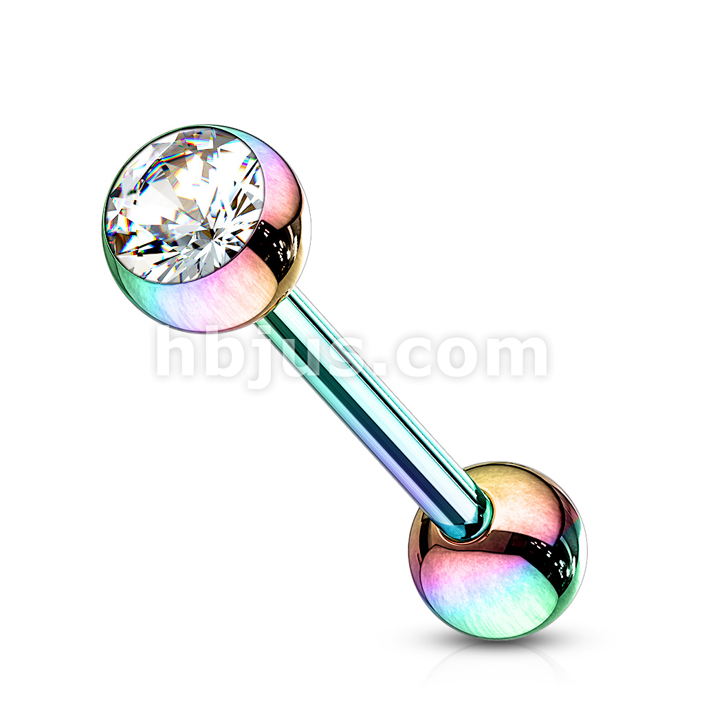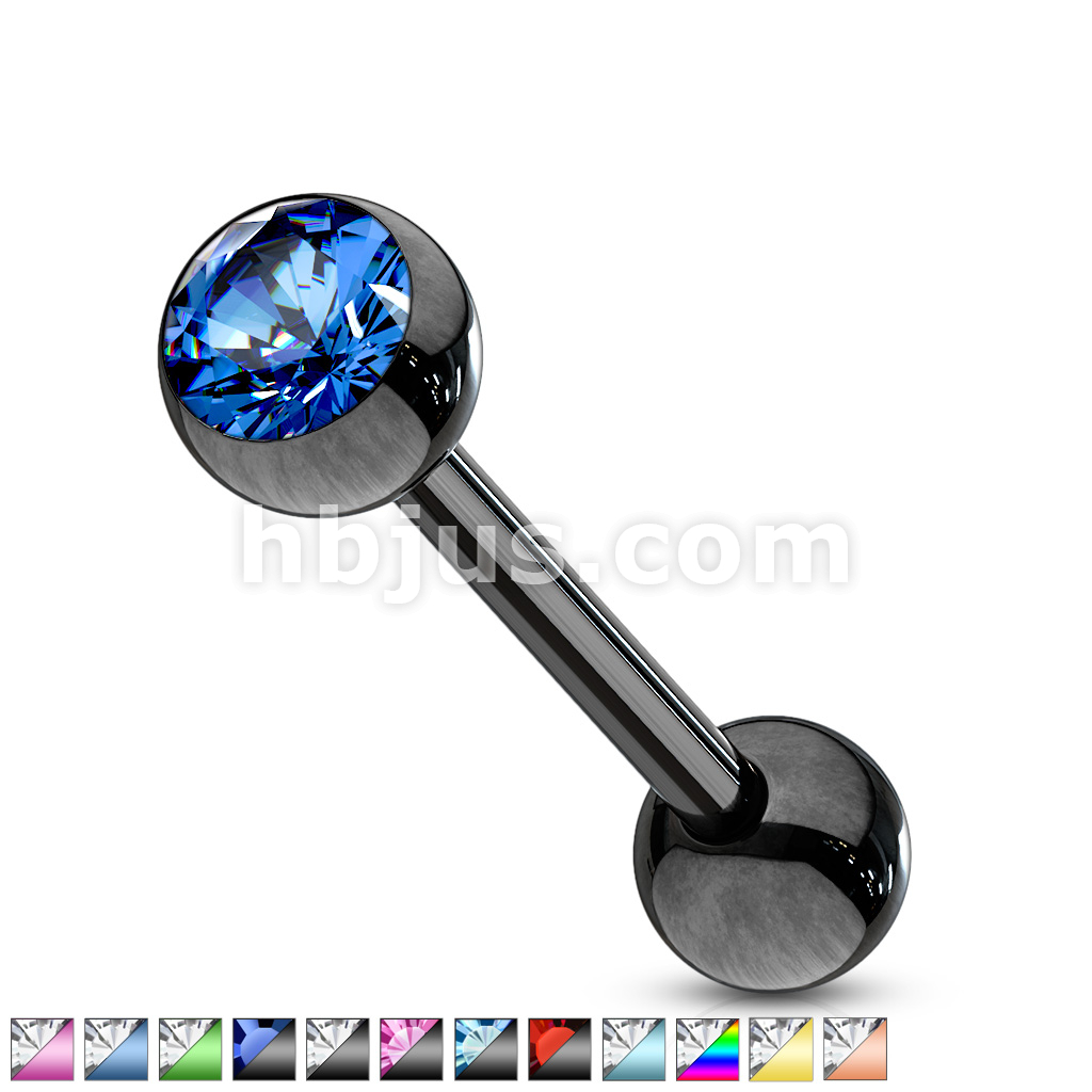 Titanium IP over 316L Surgical Steel Barbell with Bezel set Gem Ball.