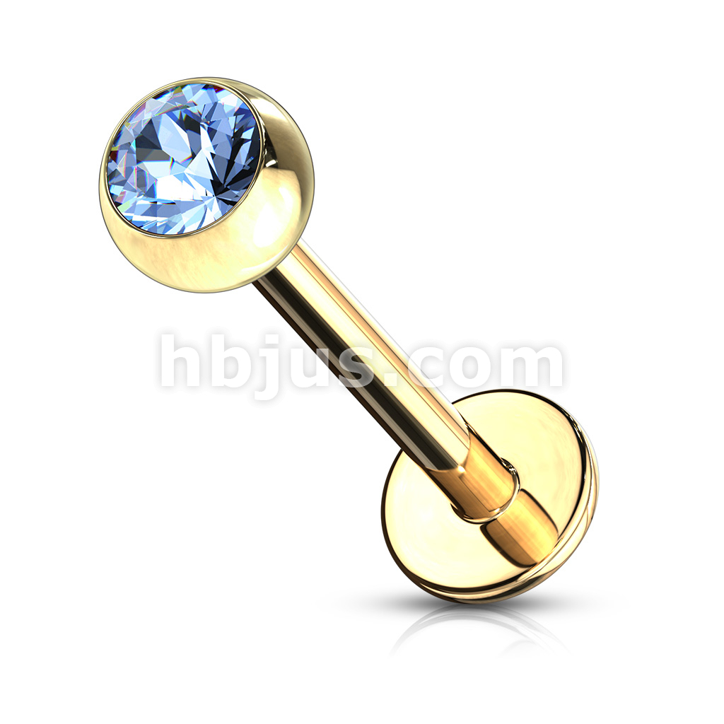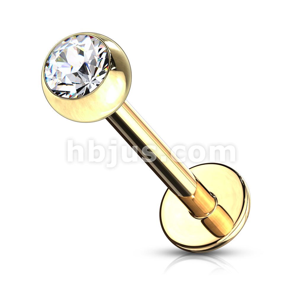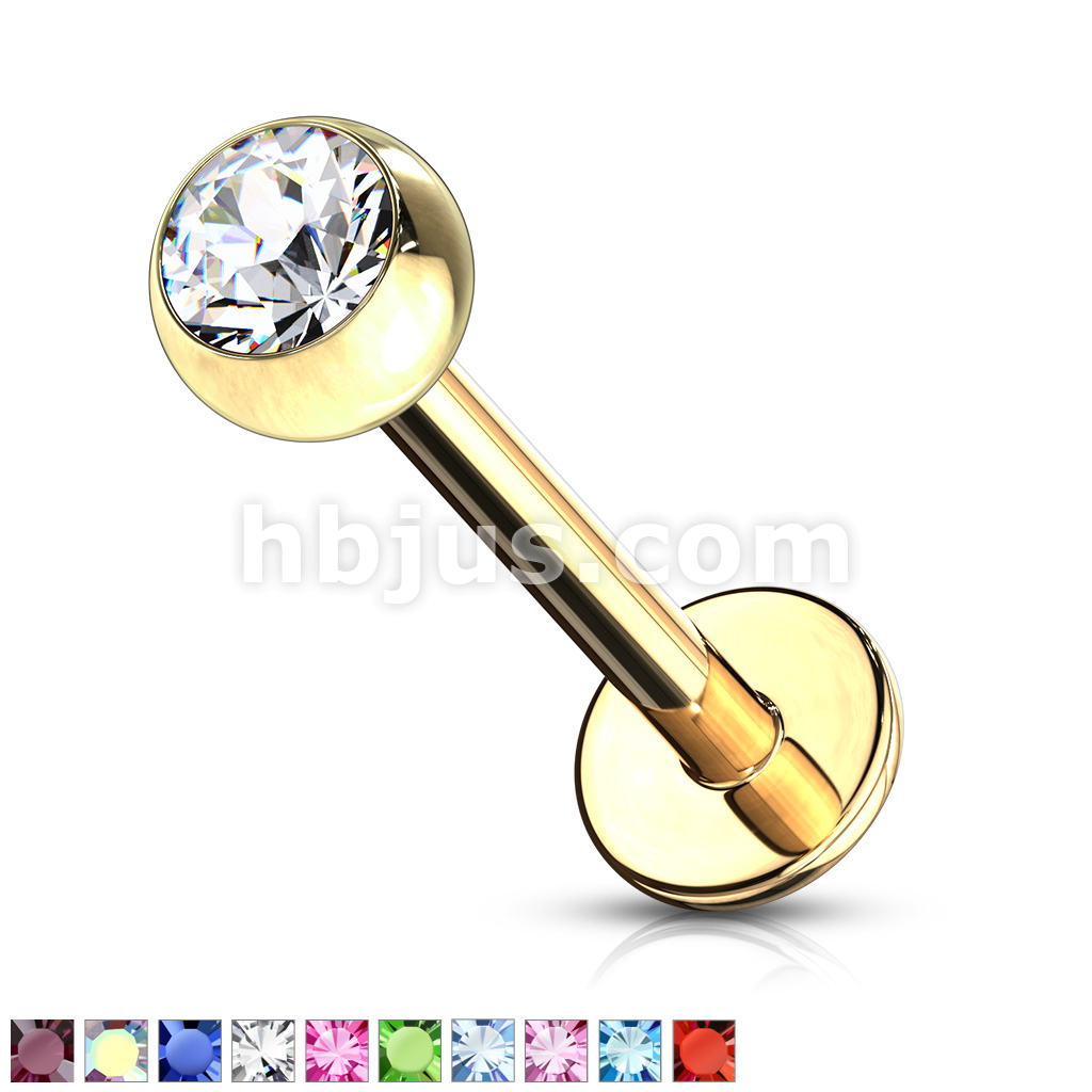 Gold Plated Over 316L Surgical Steel Labret Studs With Press Fit Jeweled Ball