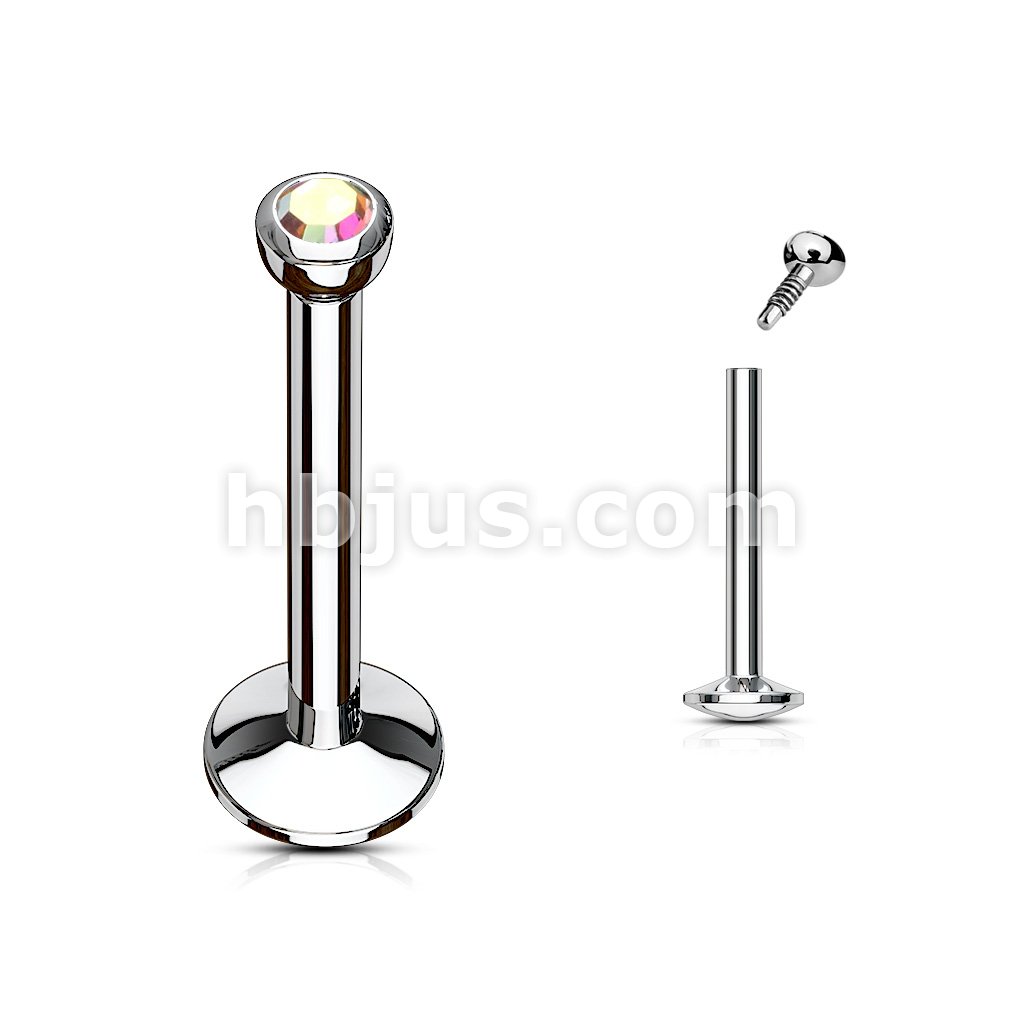 Press Fit Gem Ball Internally Threaded 316L Surgical Steel Labret/Monroe With 4mm Cambered Base