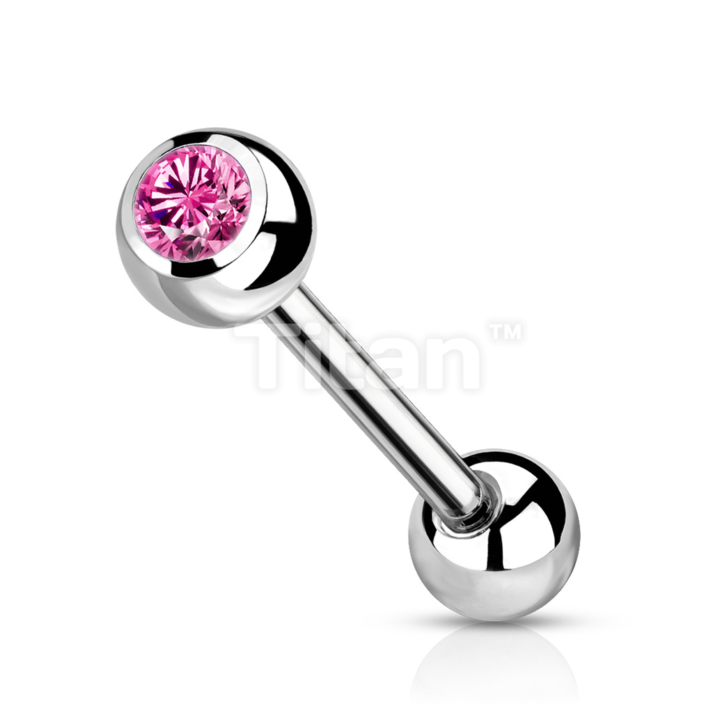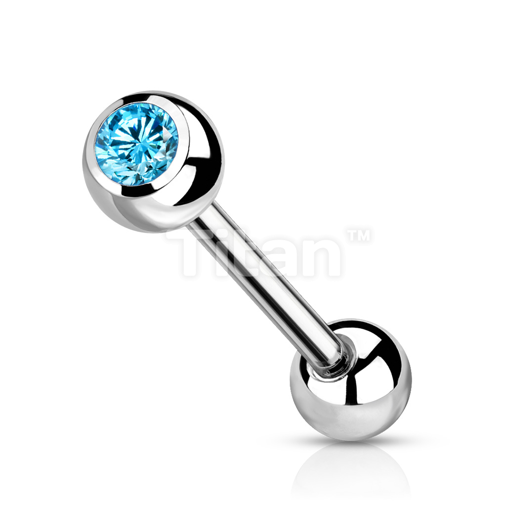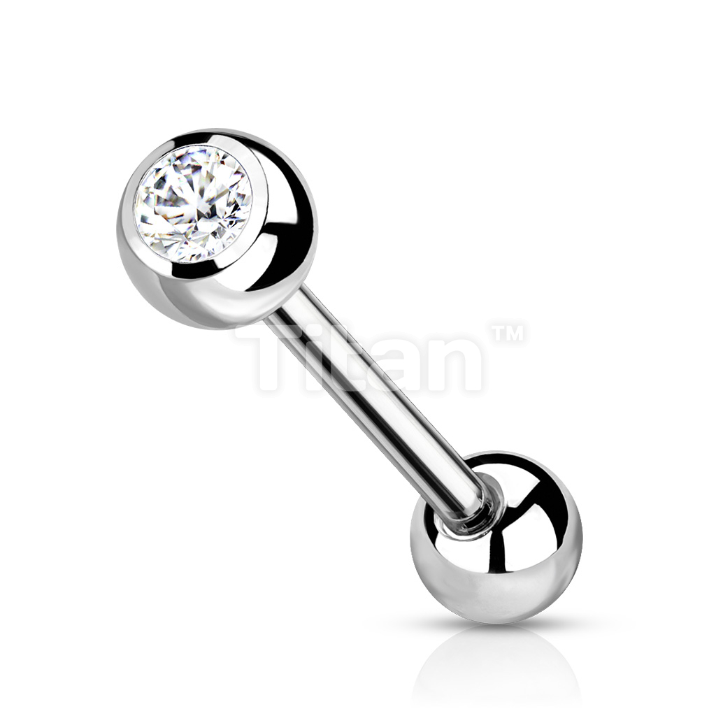 Implant Grade Titanium Externally Threaded Bezel Set CZ Barbell