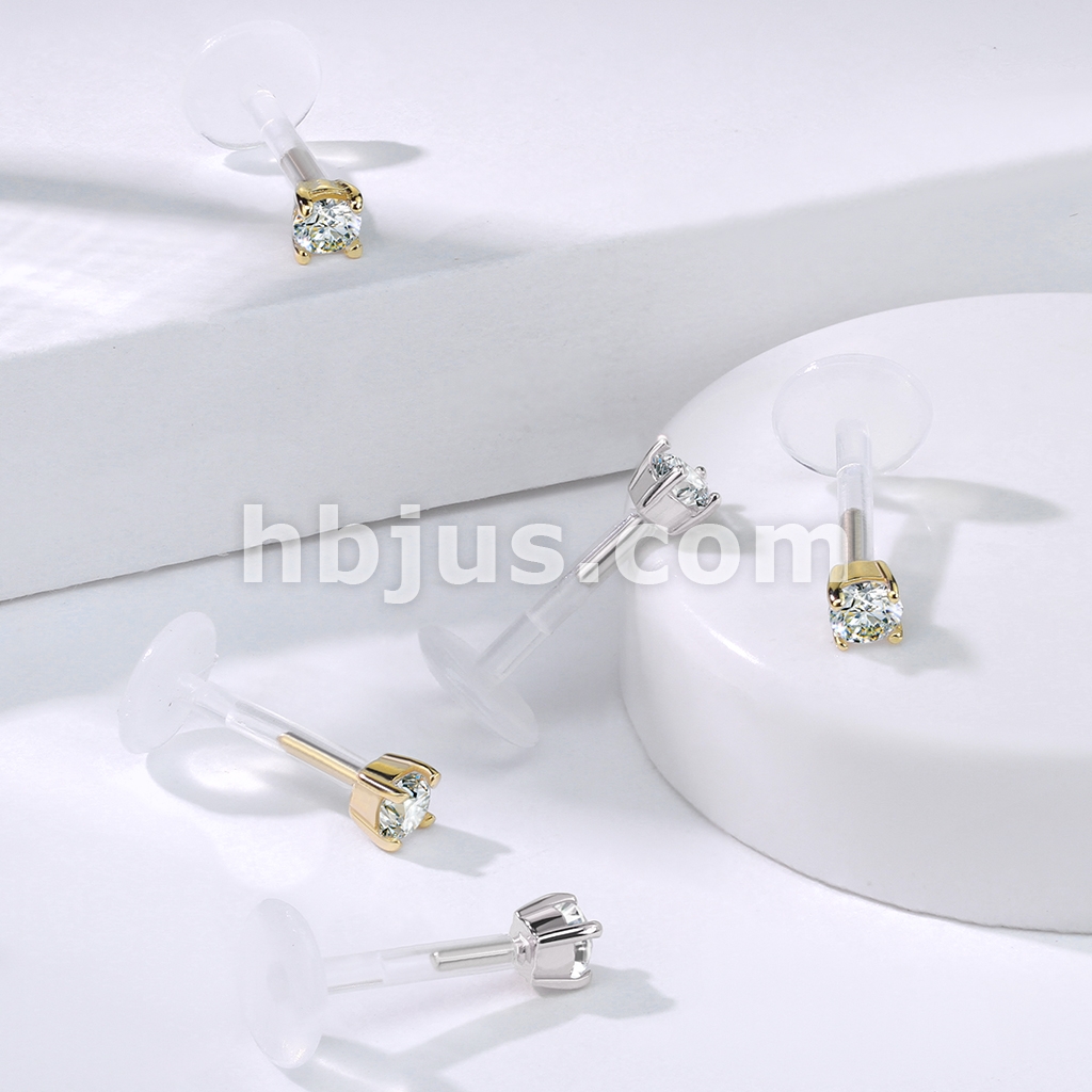 14K Gold 2.5mm CZ Prong Set Top With PTFE Flex Shaft Labret Monroe