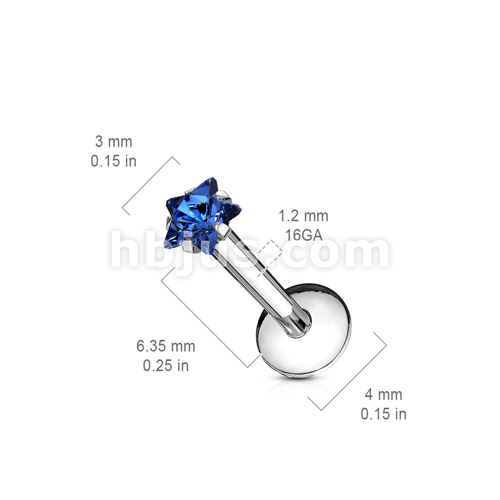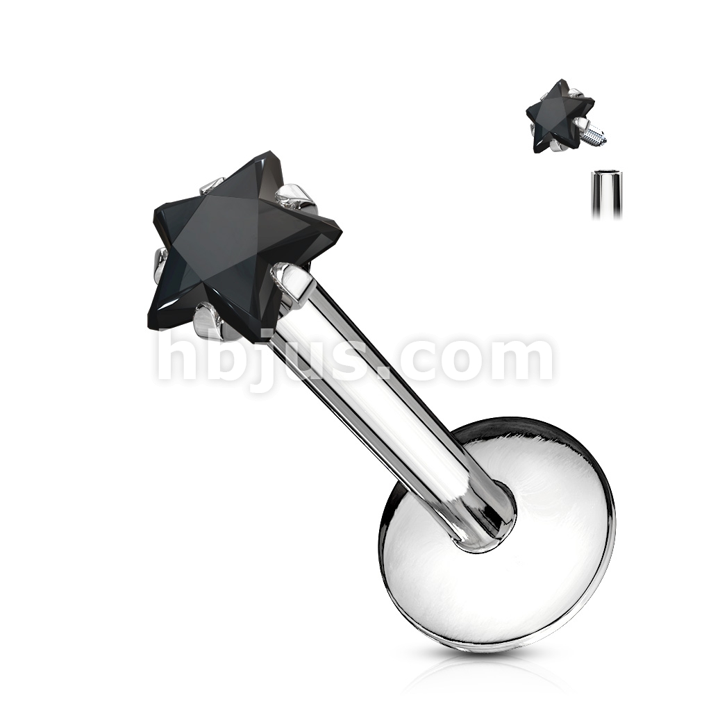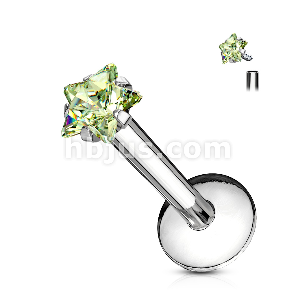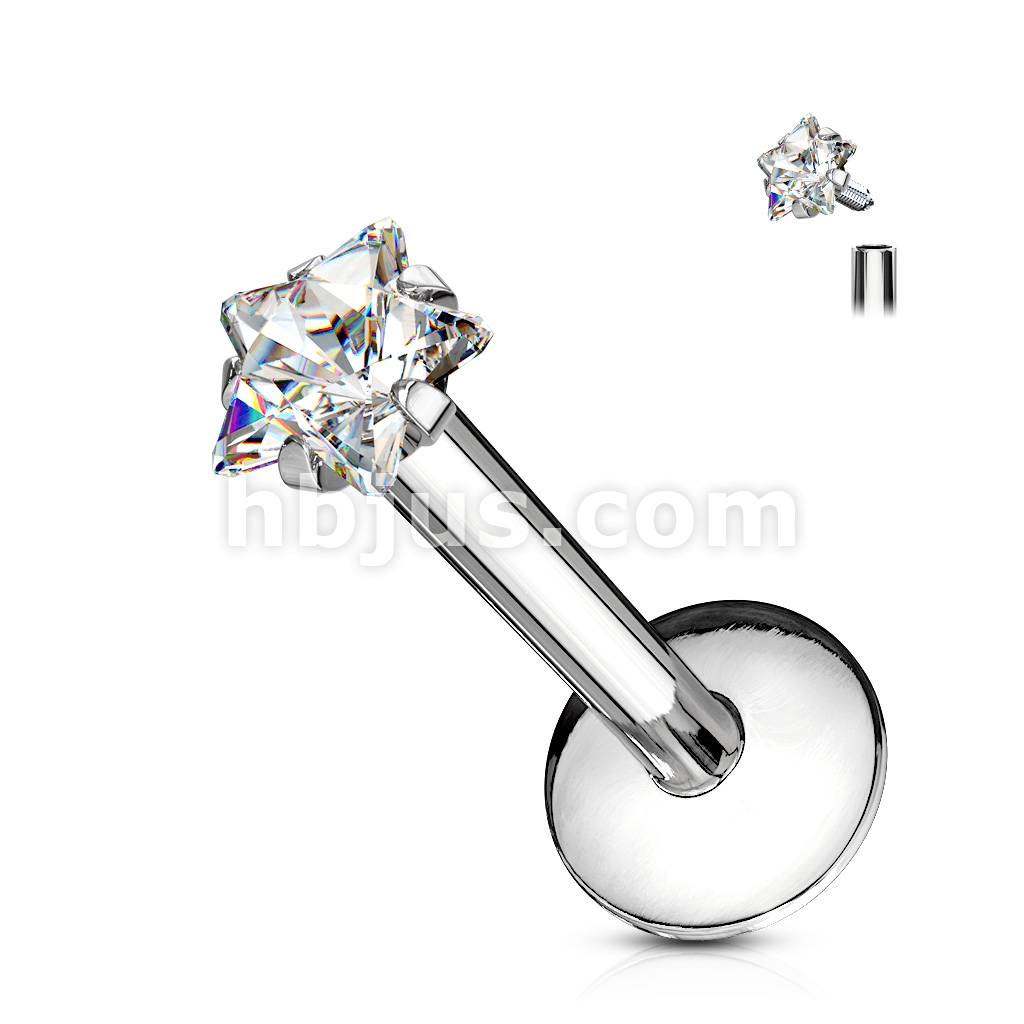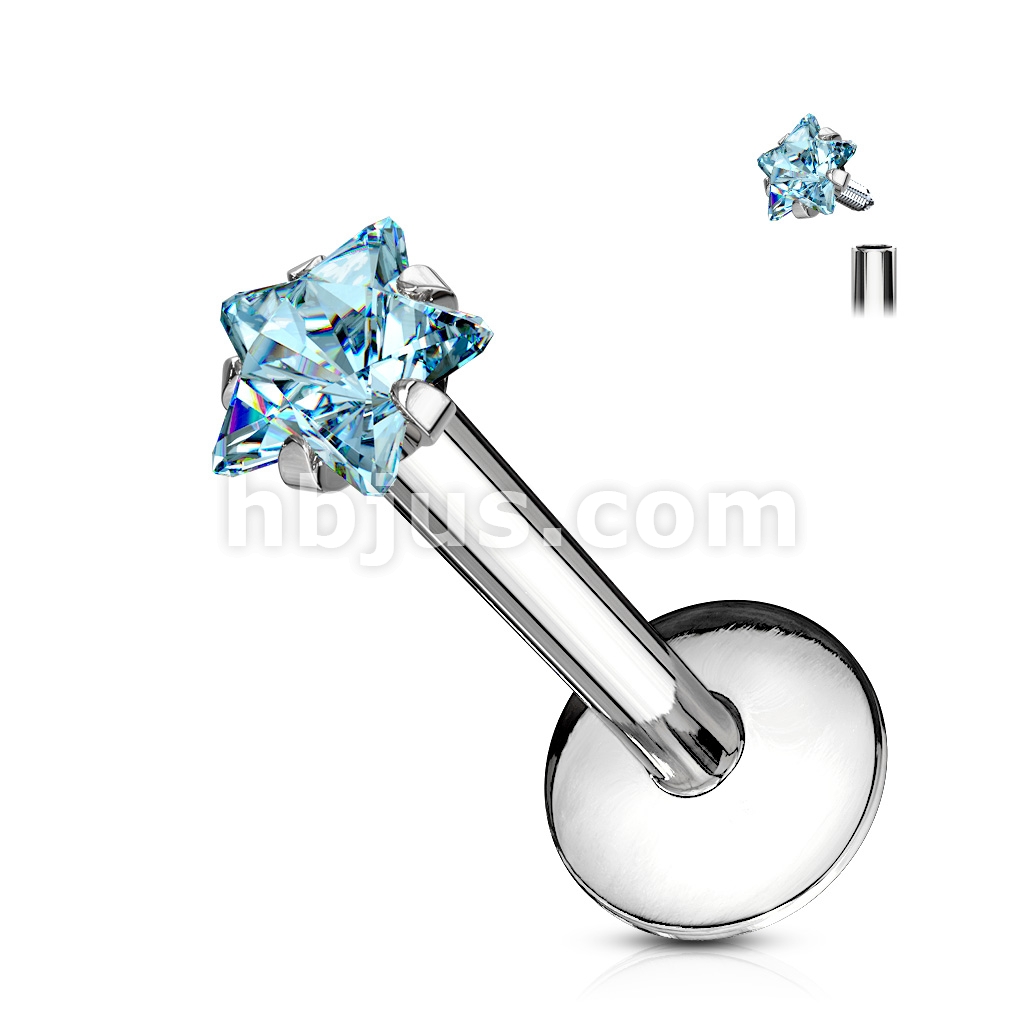 Star Gem Prong Set Labret 316L Surgical Steel Internally Threaded