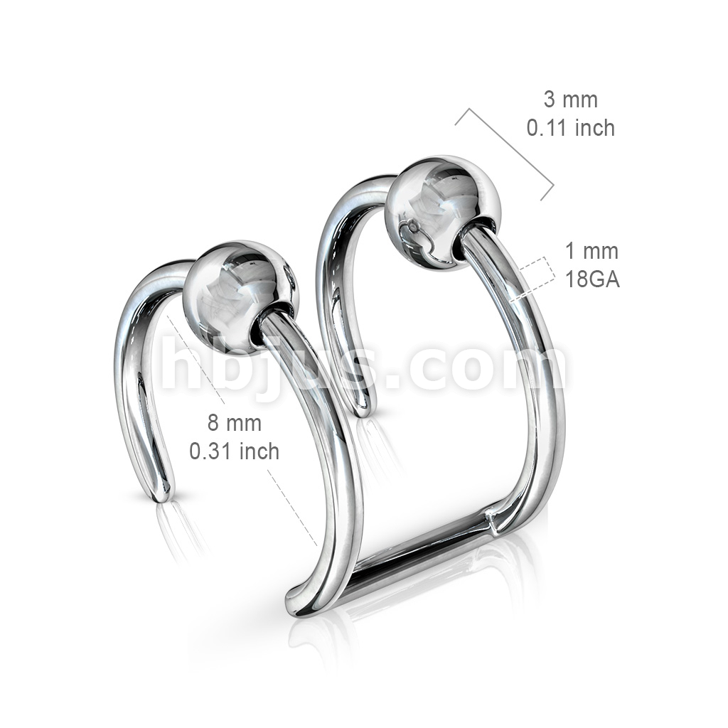 Double Closure Ring with Beads 316L Surgical Steel Fake Non-Piercing Cartilage 'Clip-On'