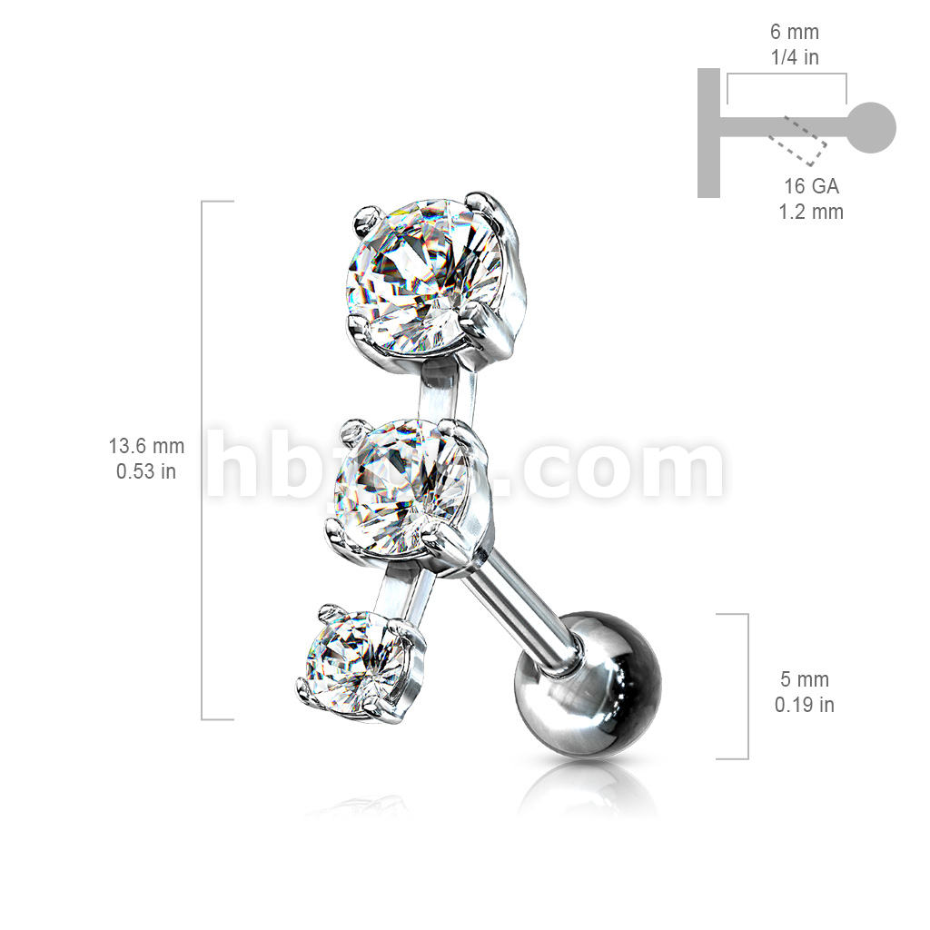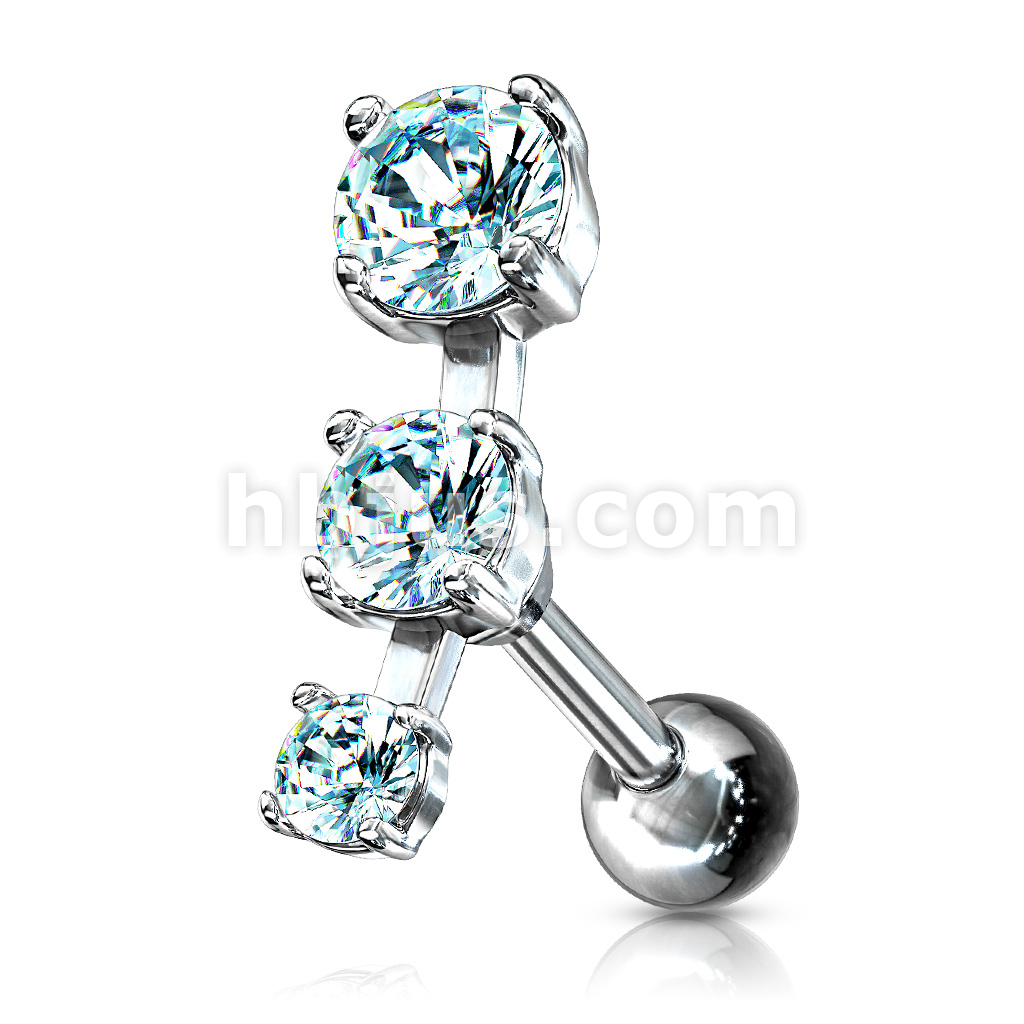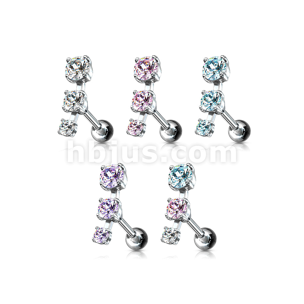 Triple CZ Droplet Tragus/Cartilage Piercing Stud 316L Surgical Steel