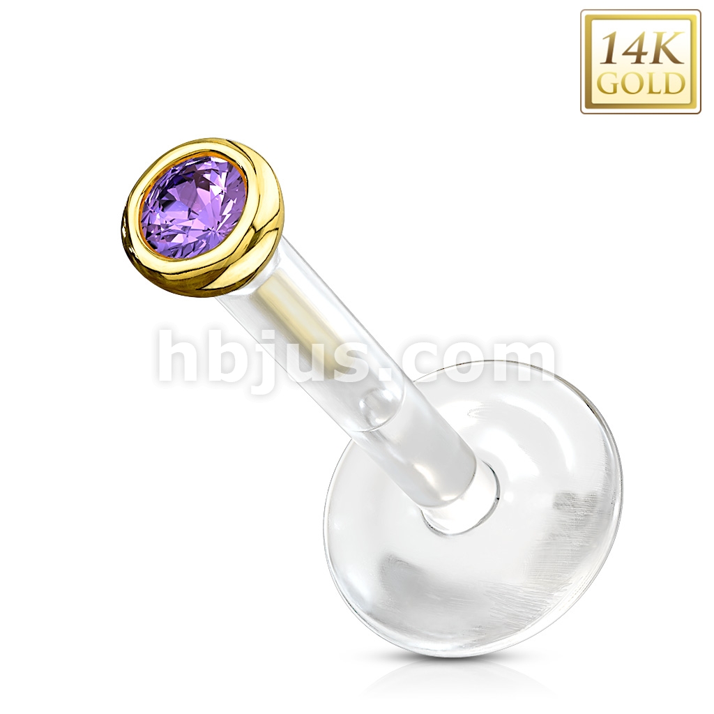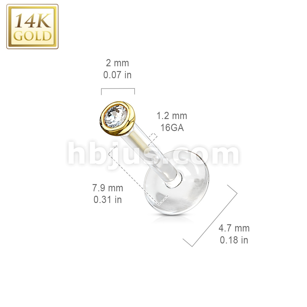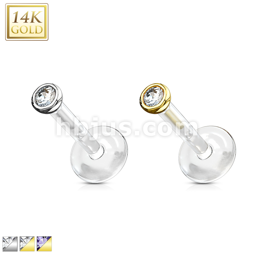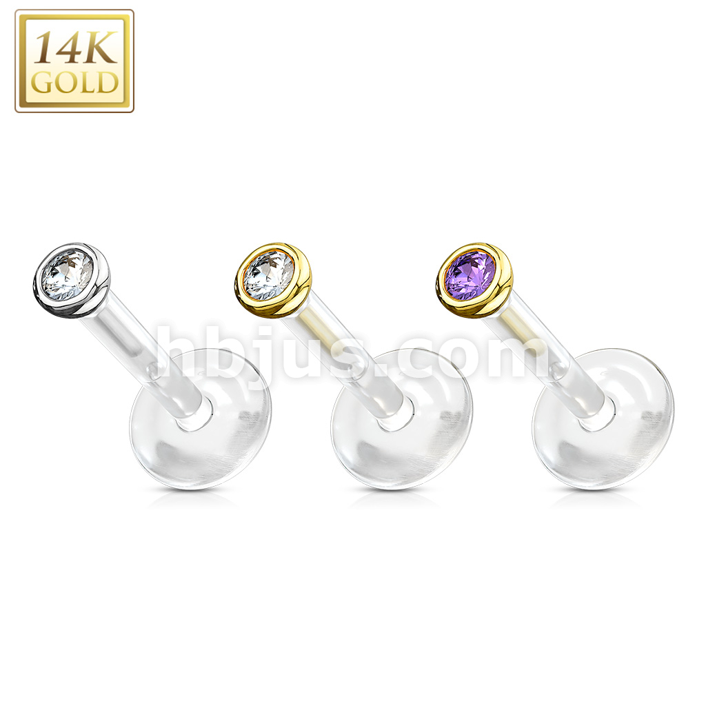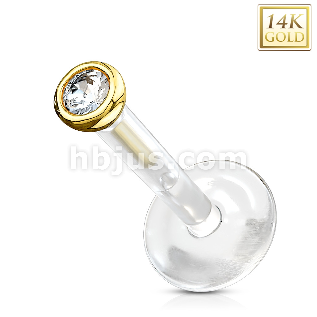 14K Gold Gemball CZ Top With PTFE Flex Shaft Labret/Monroe
