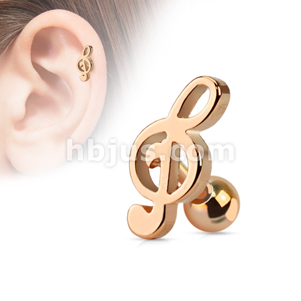 Treble Clef Music Note Tragus/Cartilage Piercing Stud 316L Surgical Steel
