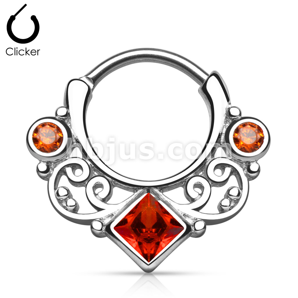 Lace Swirl Gem w/ Square CZ Center Septum Clicker