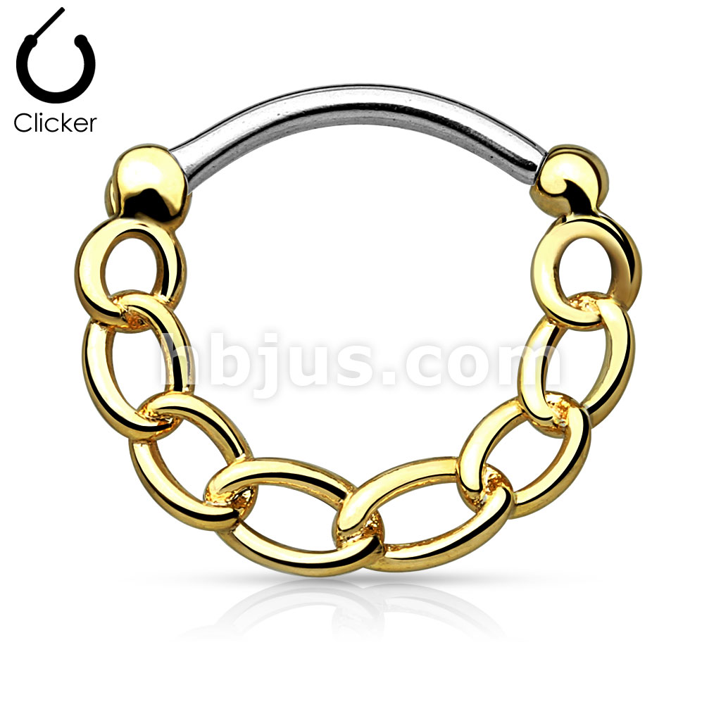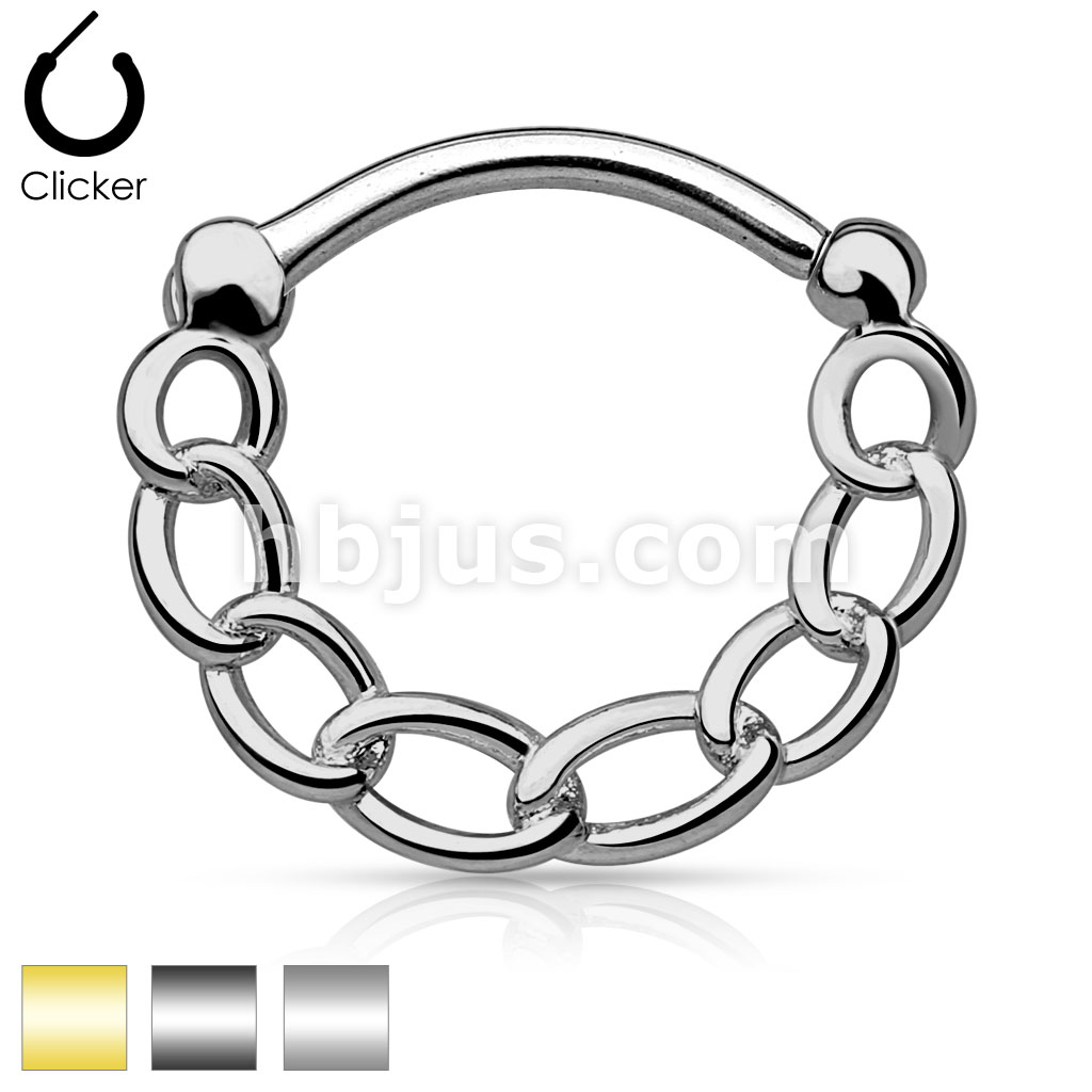 316L Surgical Steel Round Septum Clicker with Linked Chain
