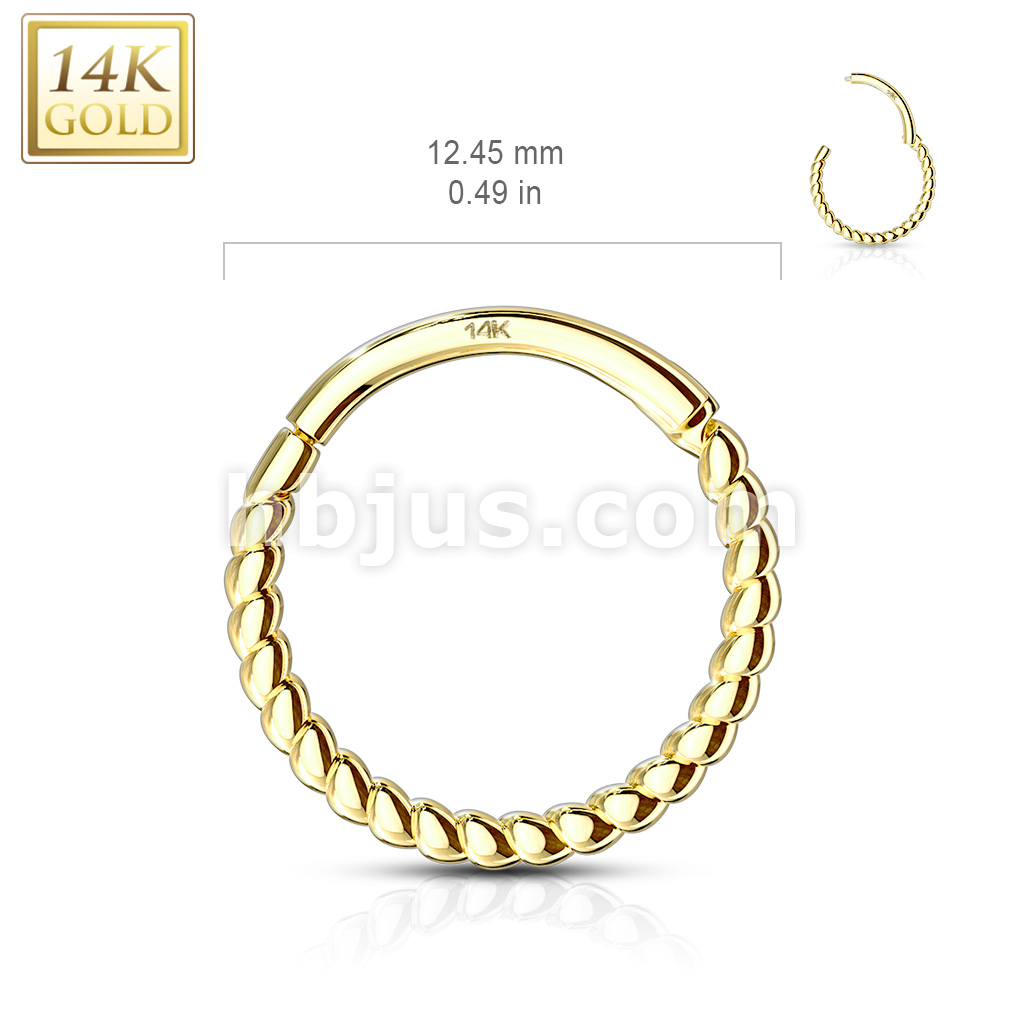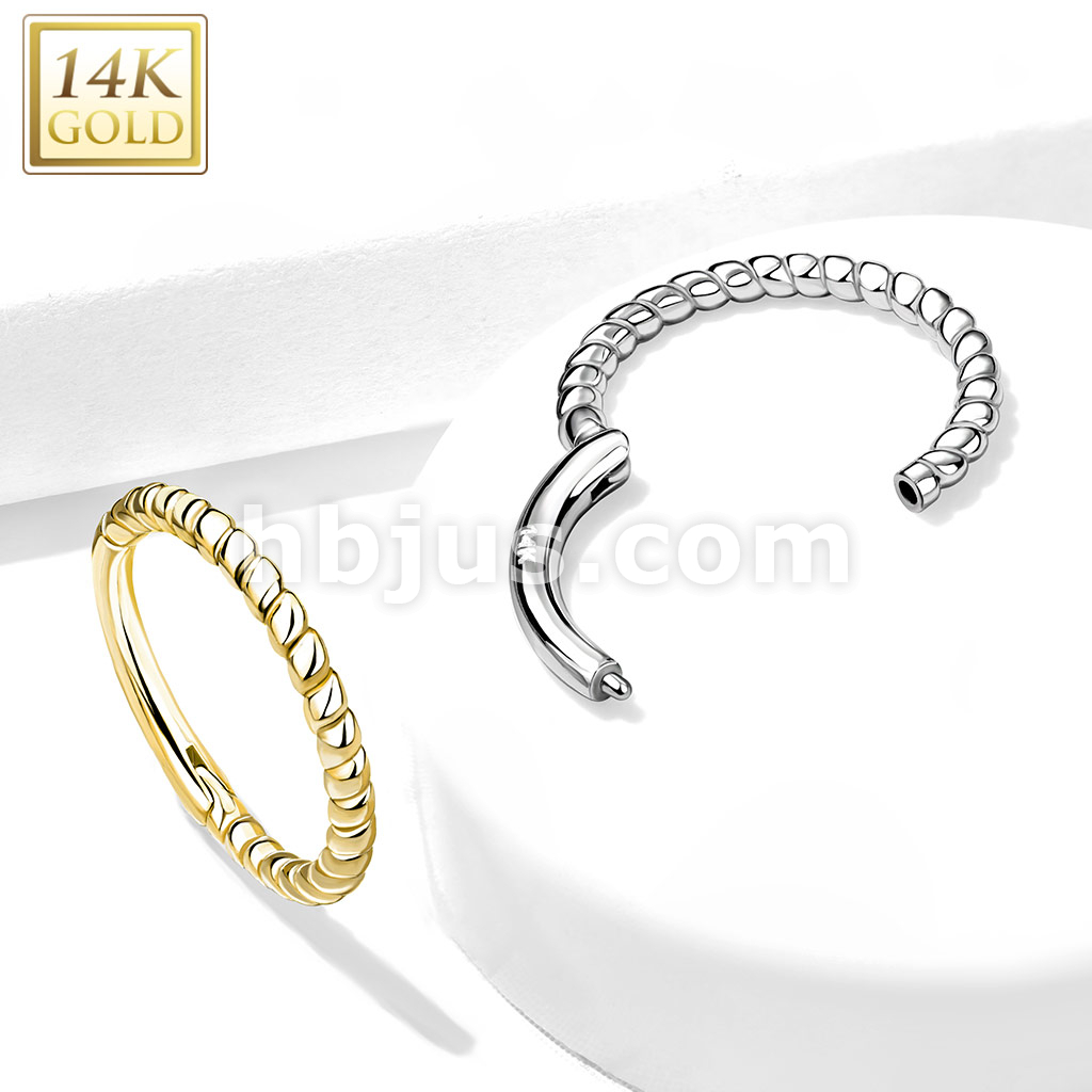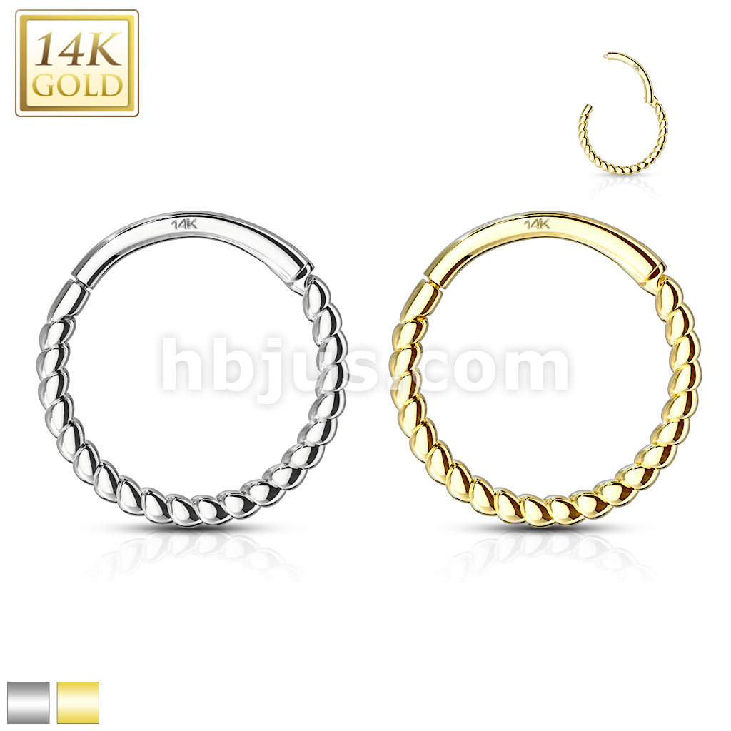 14K Gold Braided Hinged Hoop Rings for Ear Cartilage, Nose Septum and More
