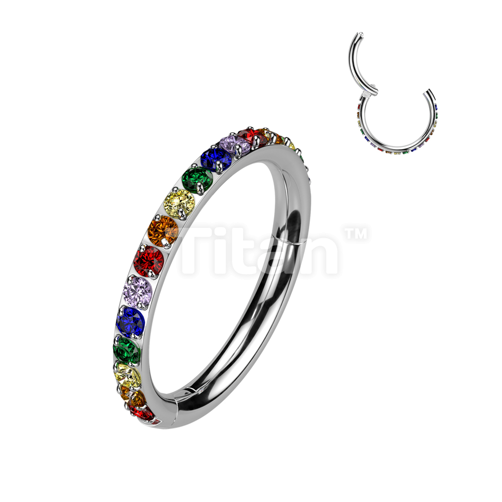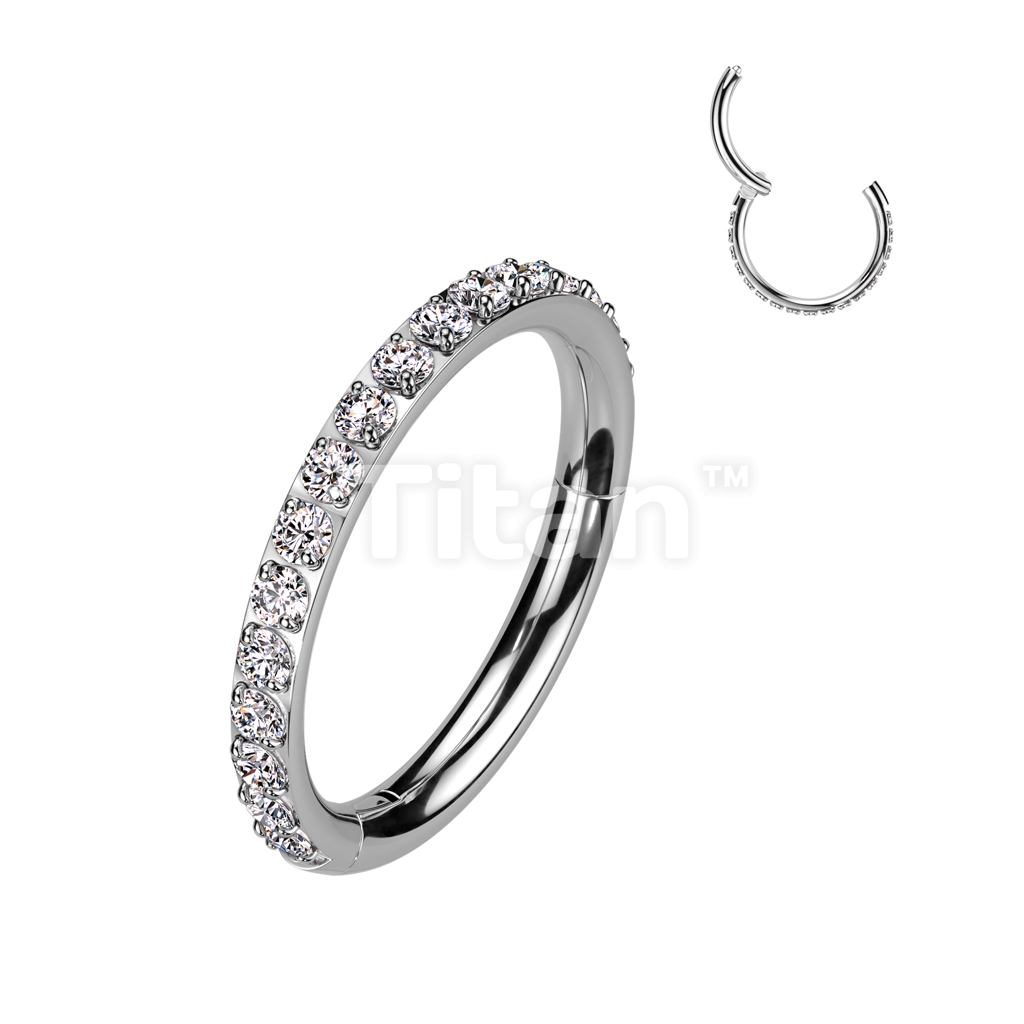 Implant Grade Titanium Hinged Segment Hoop Ring With Outward Facing Pave CNC Set CZ
