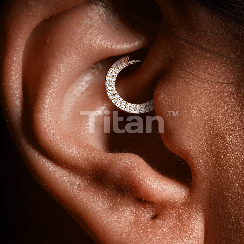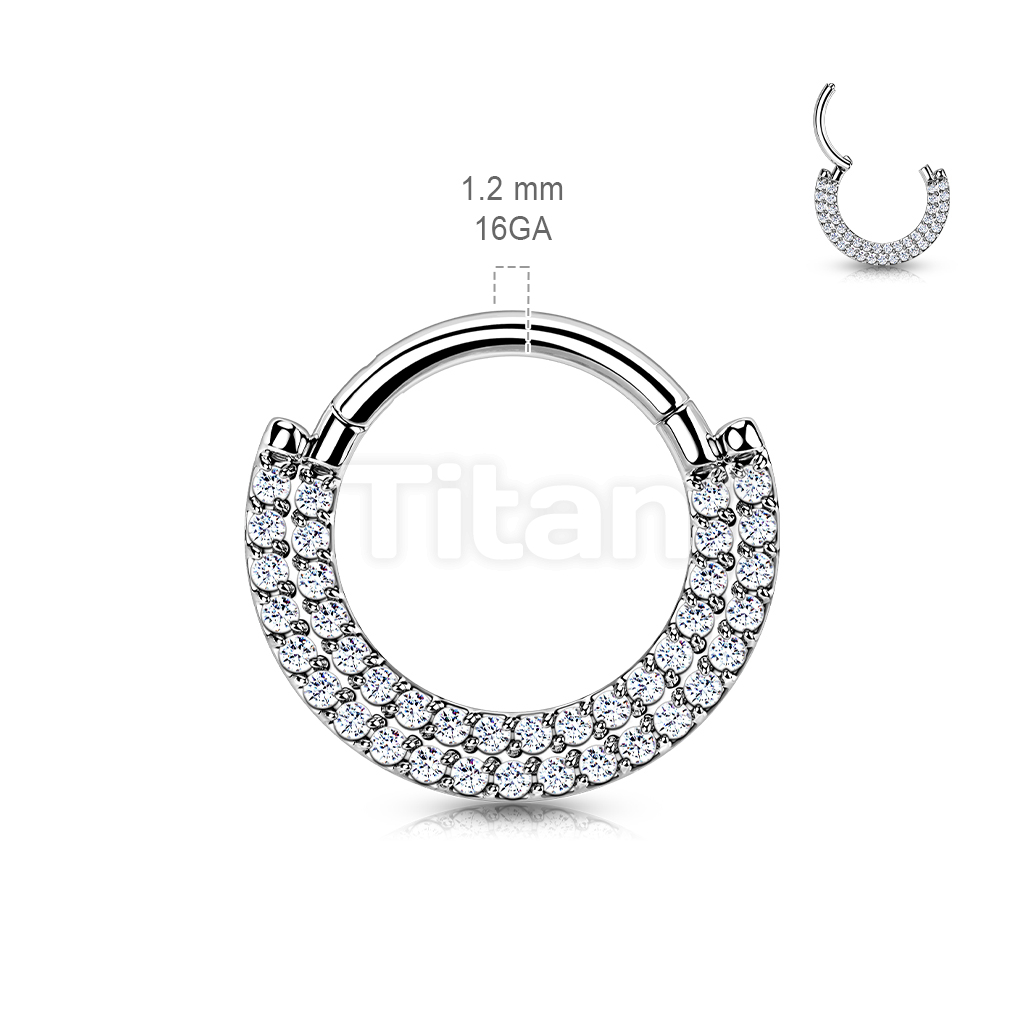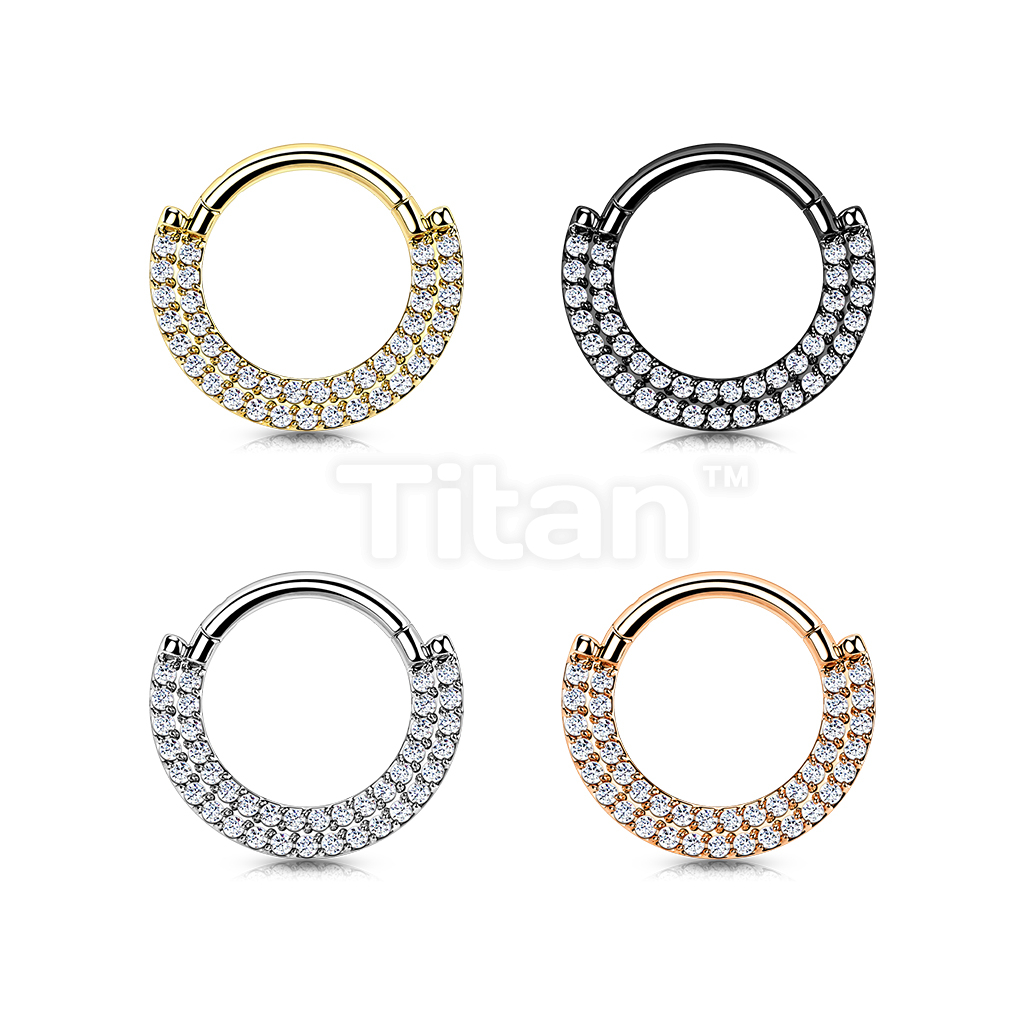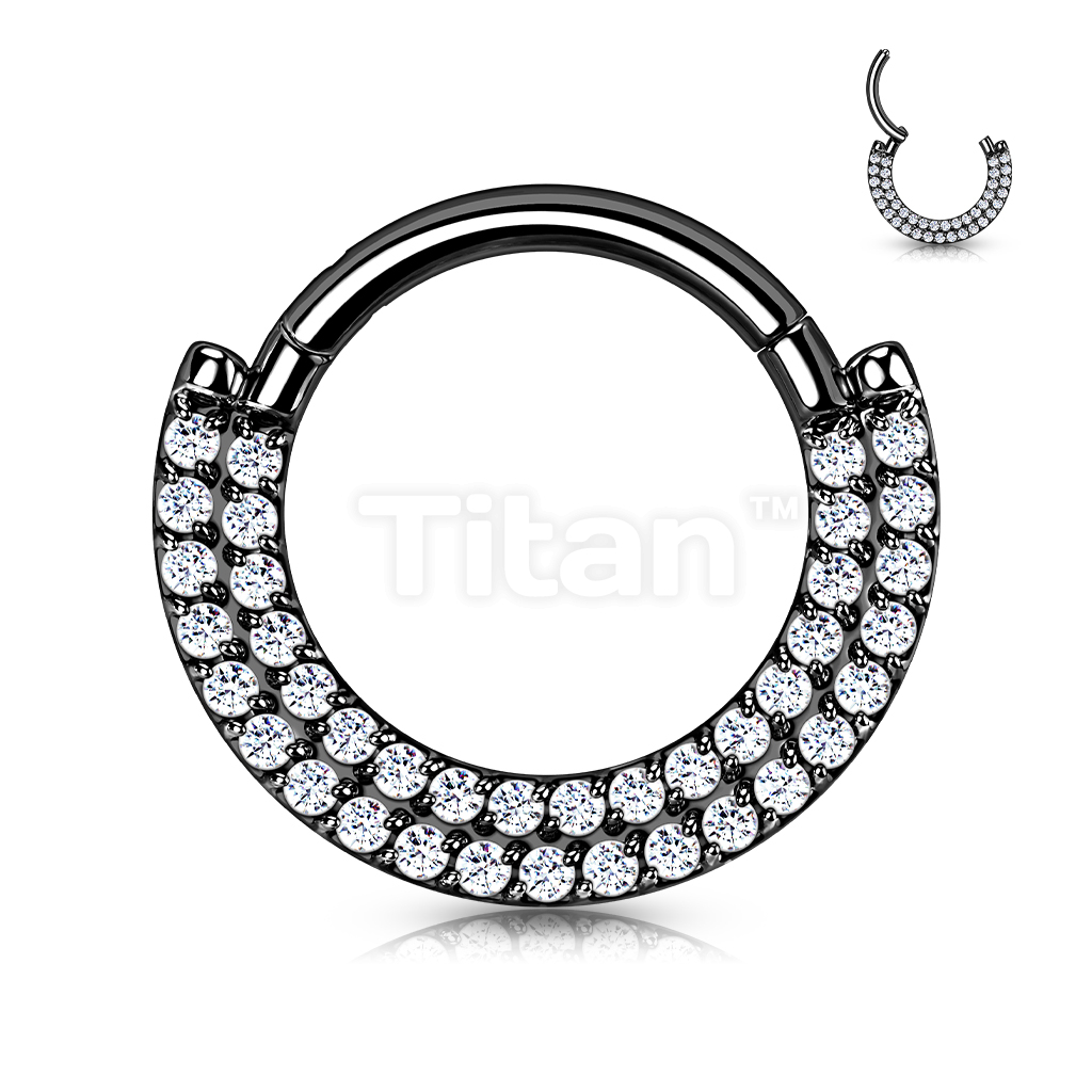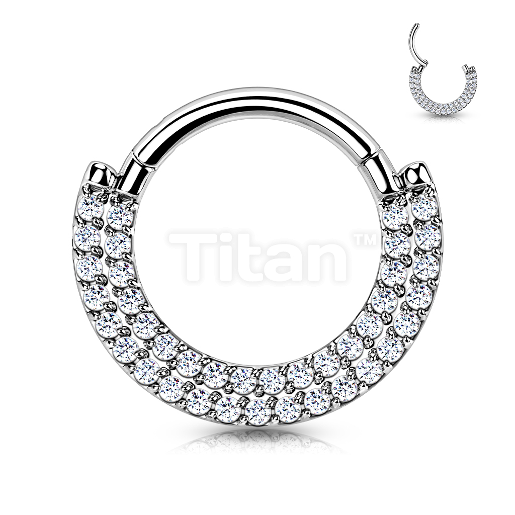 Implant Grade Titanium Hinged Segment Hoop Ring With CNC Set CZ Pave Double Lined Front