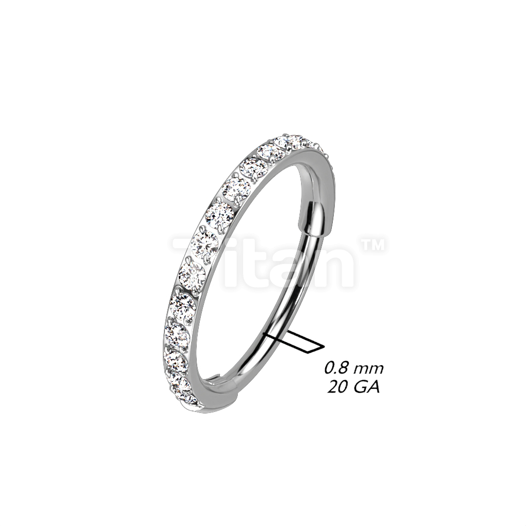 Implant Grade Titanium Hinged Segment Hoop Ring With Outward Facing Pave CZs for the Nose, Ear and More