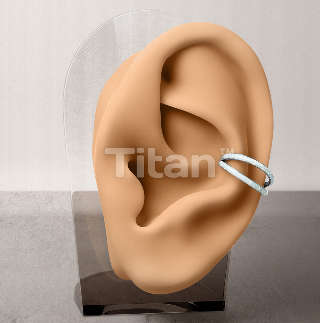 Implant Grade Titanium Hinged Segment Double Hoop Ring Lined With Outward Facing Opal