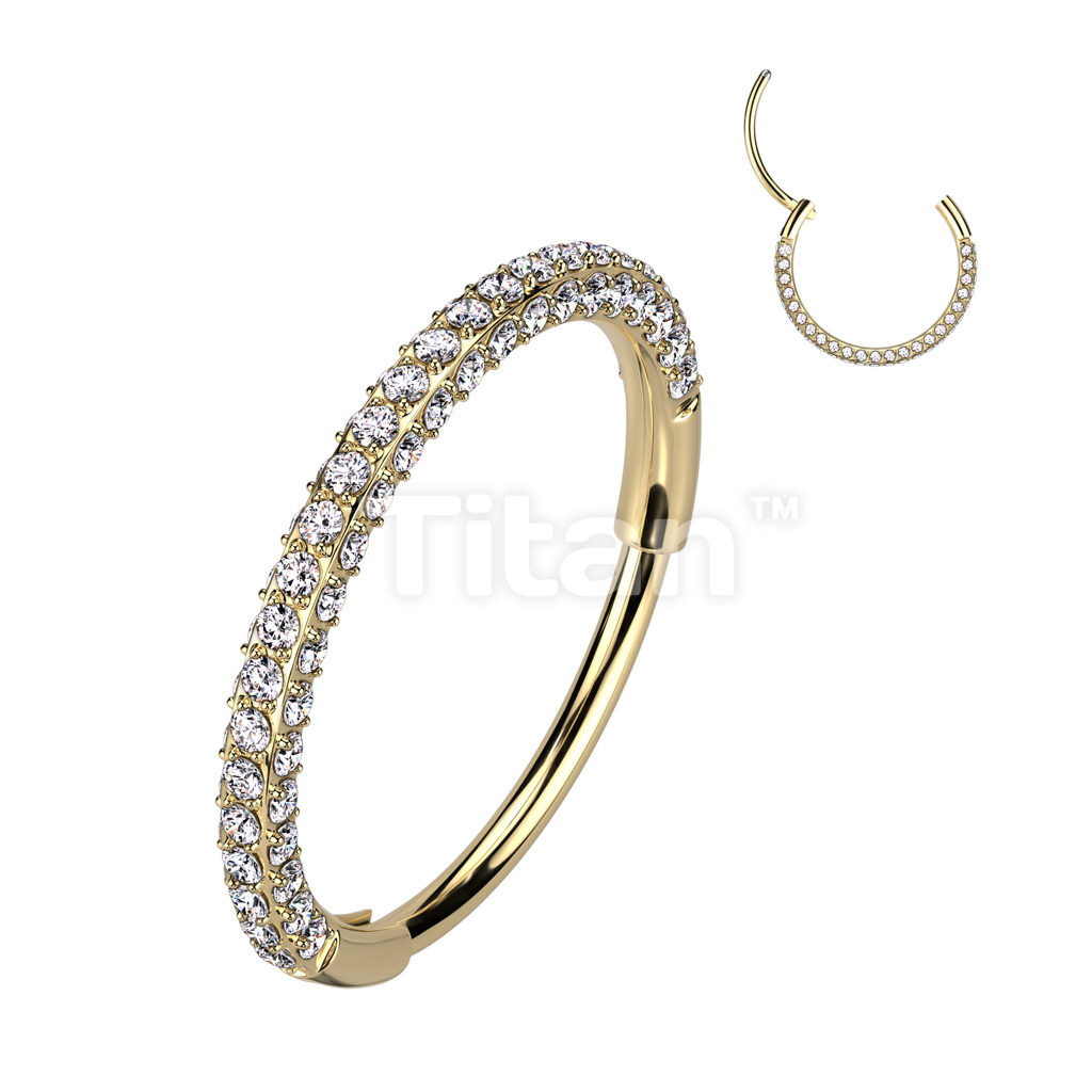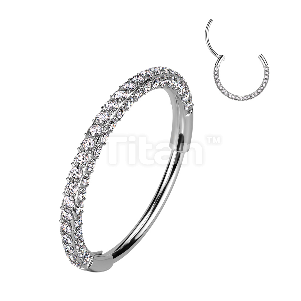 Implant Grade Titanium Hinged Segment 20G Nose, Ear Hoops With 3 Pave CZ Sides