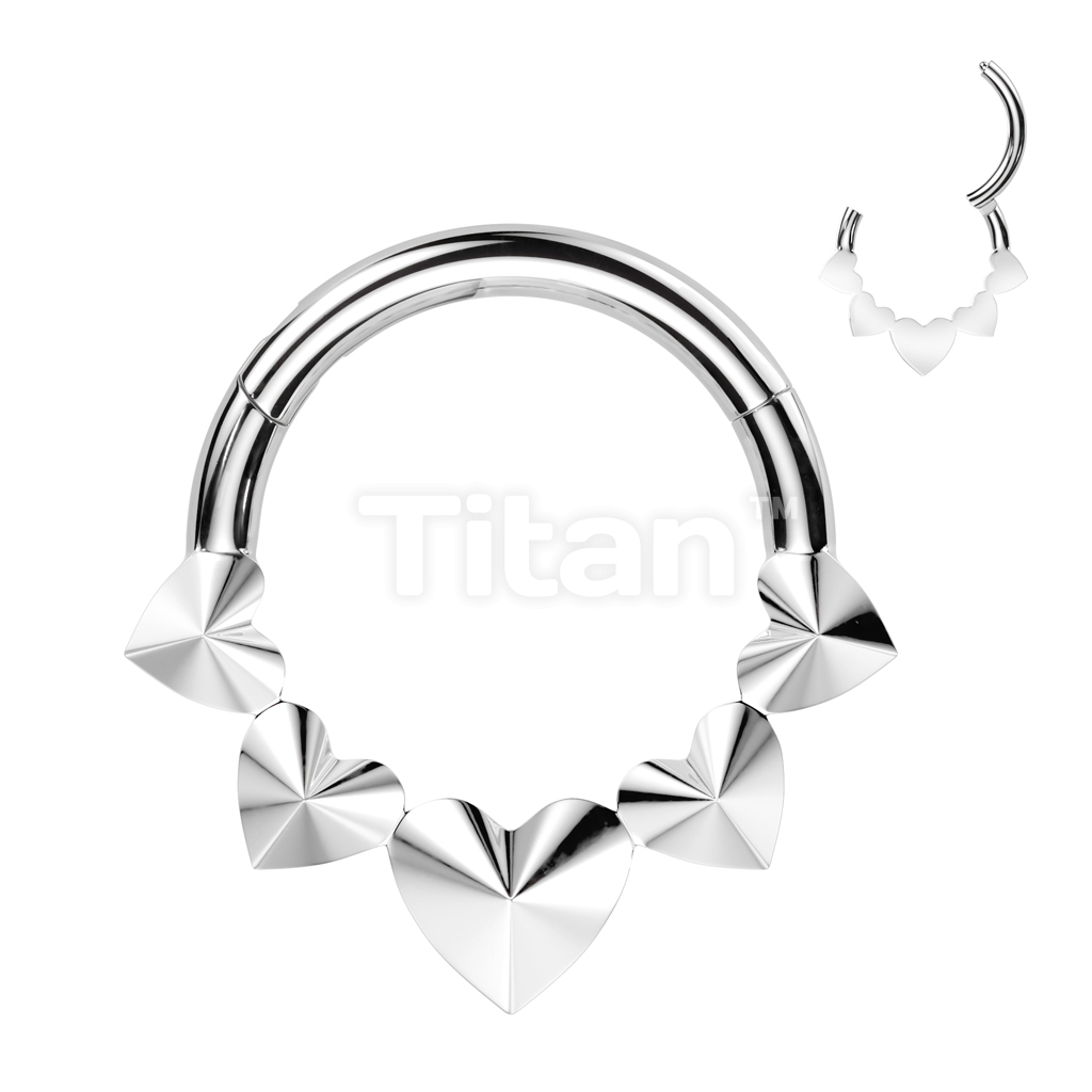 Implant Grade Titanium Hinged Segment Hoop Ring With 5 Front Facing 3D Hearts