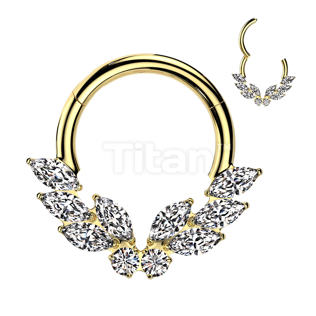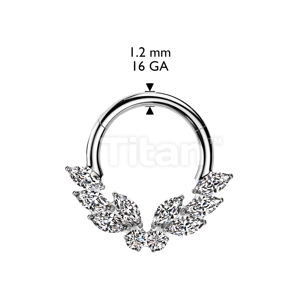 Implant Grade Titanium Hinged Segment Hoop Ring With CZ Butterfly Center and 3 Marquise CZ on Each Side