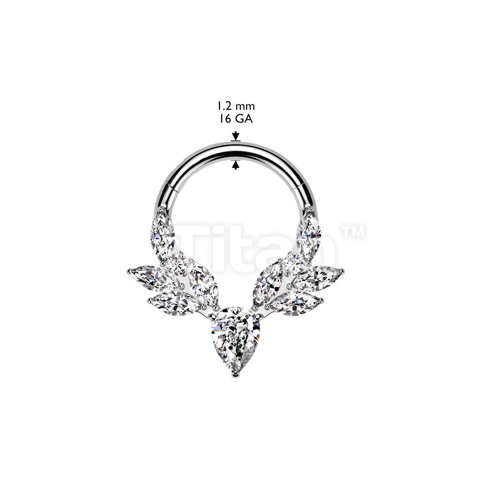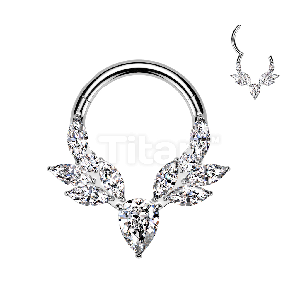 Implant Grade Titanium CZ Pear Center Hinged Segment Hoop Ring With Marquise CZ Vines