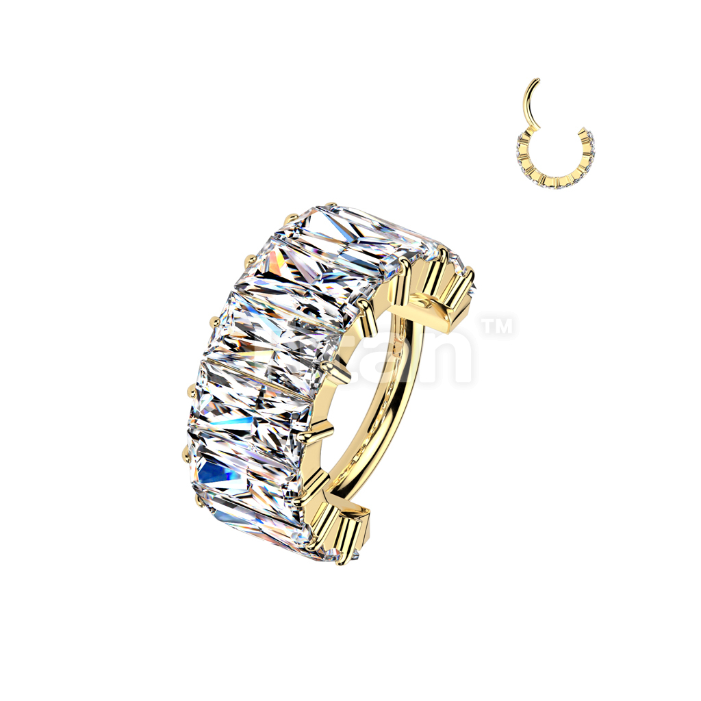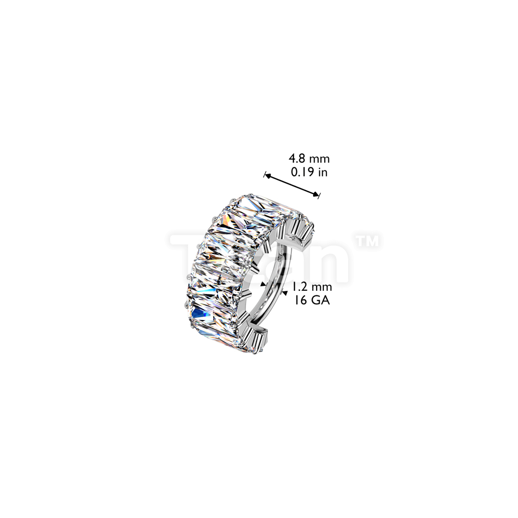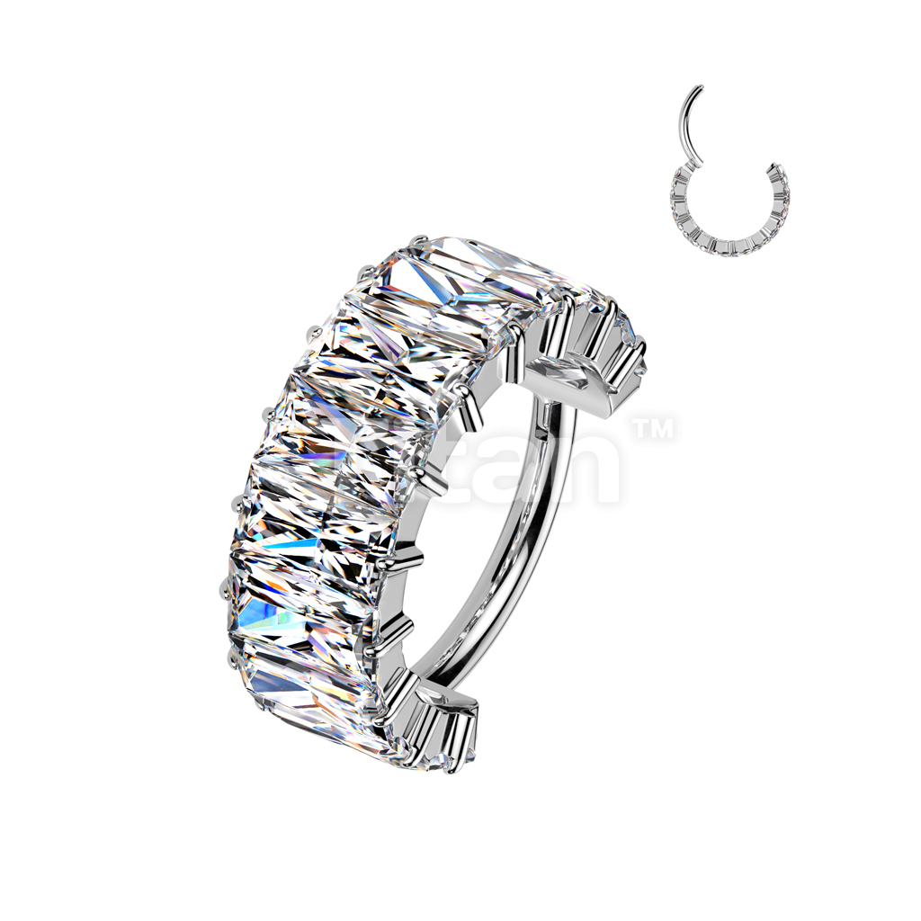 Implant Grade Titanium Wide Hinged Segment Hoop Ring With Large Baguette CZ's